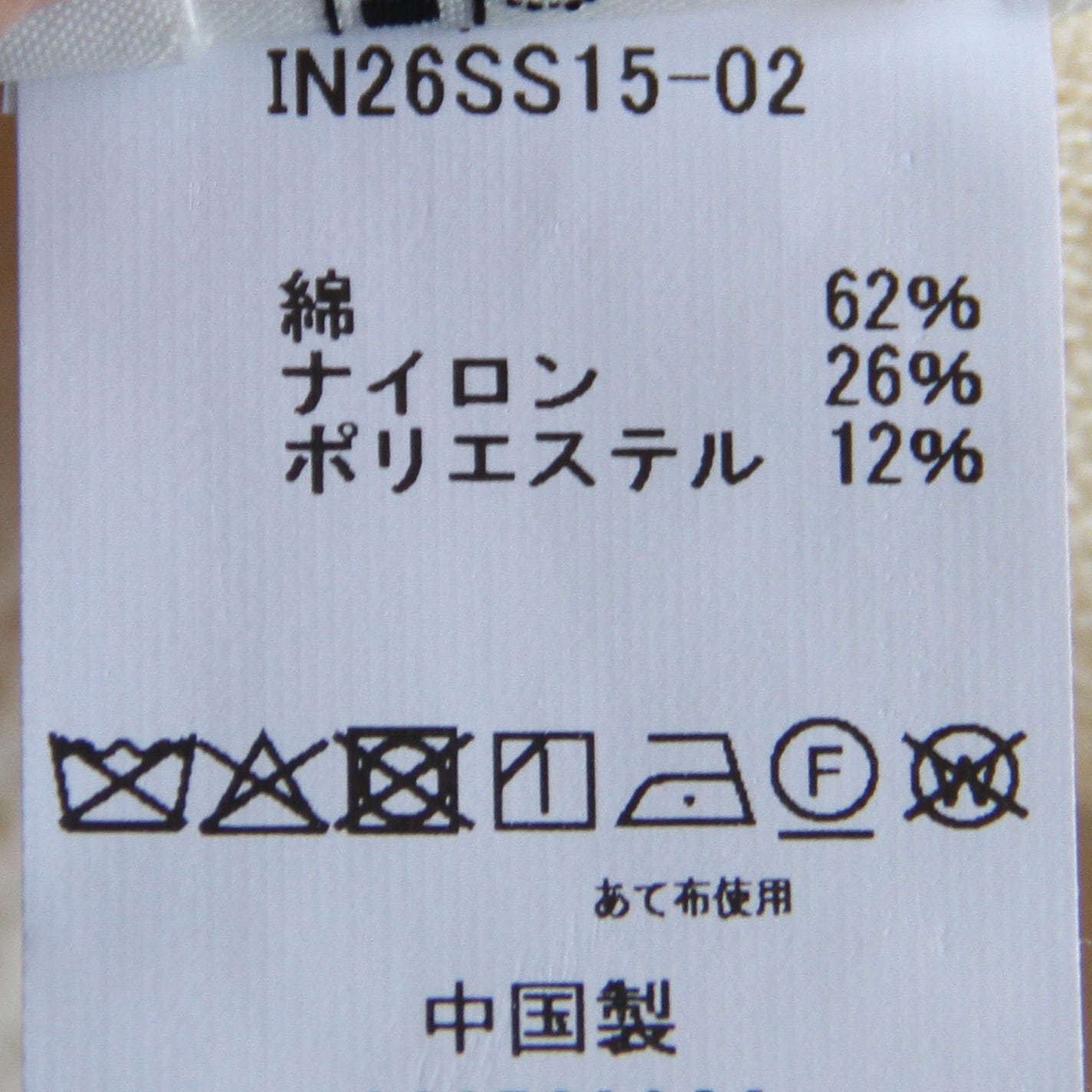 素材 : COTTON 62% / NYLON 26% / POLYESTER 12%