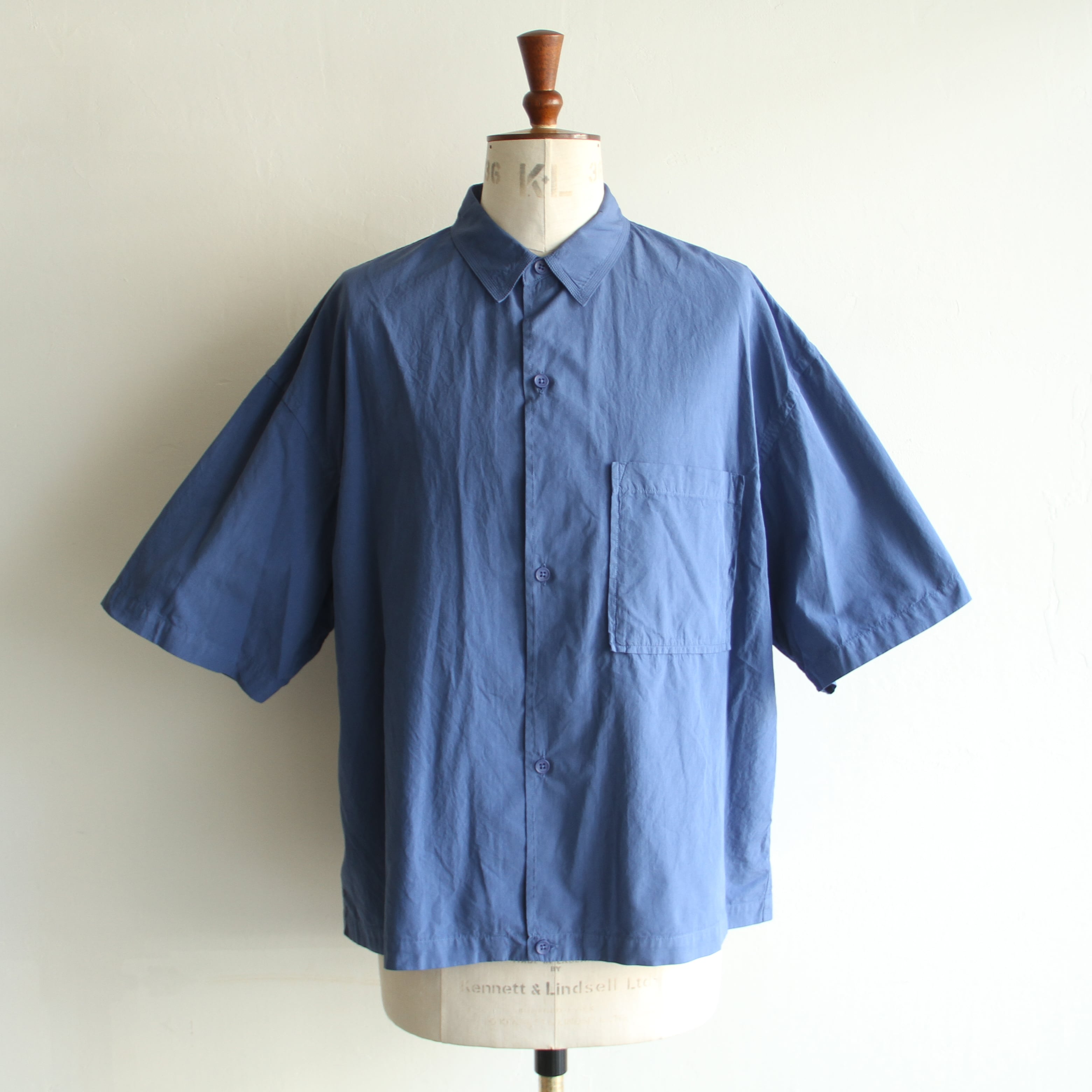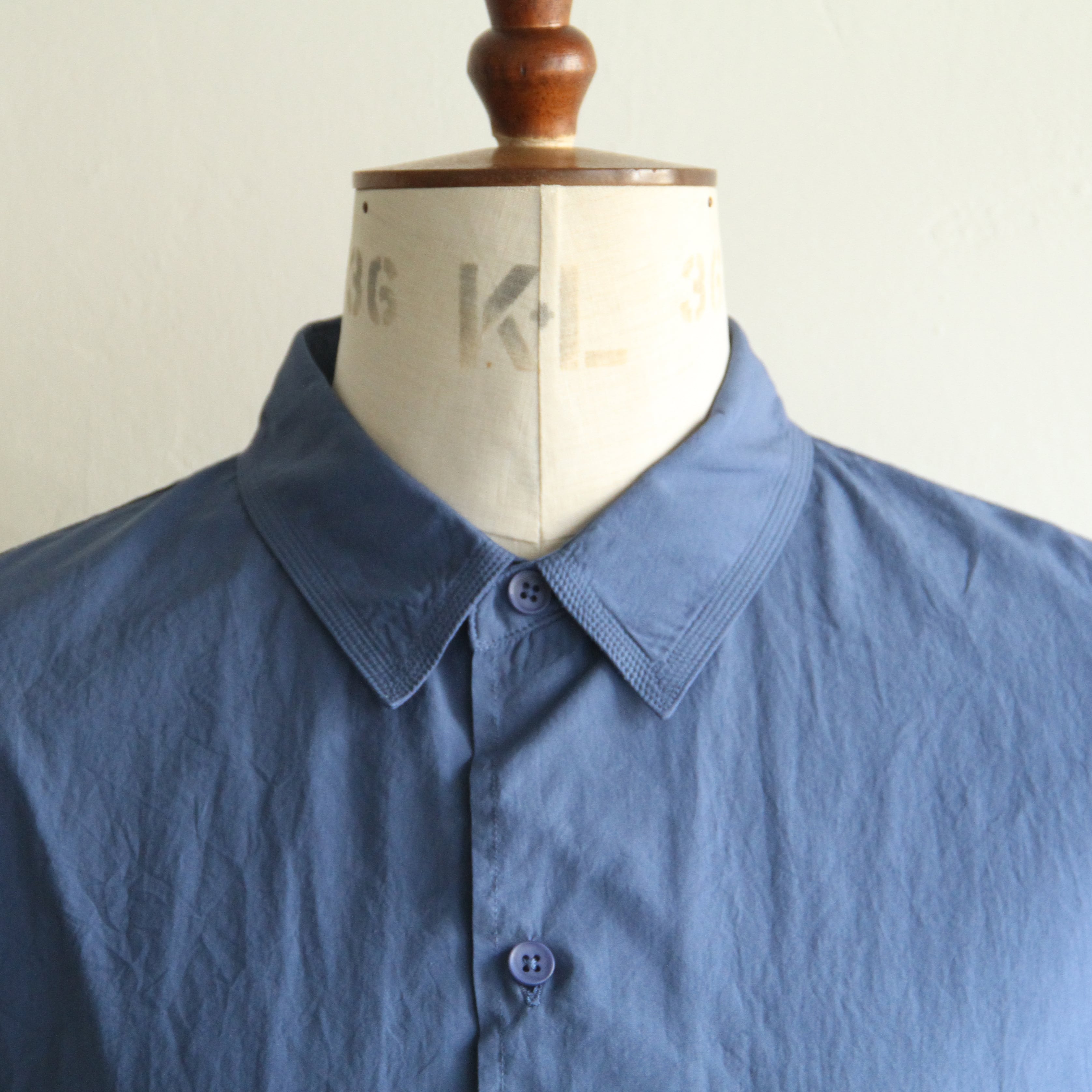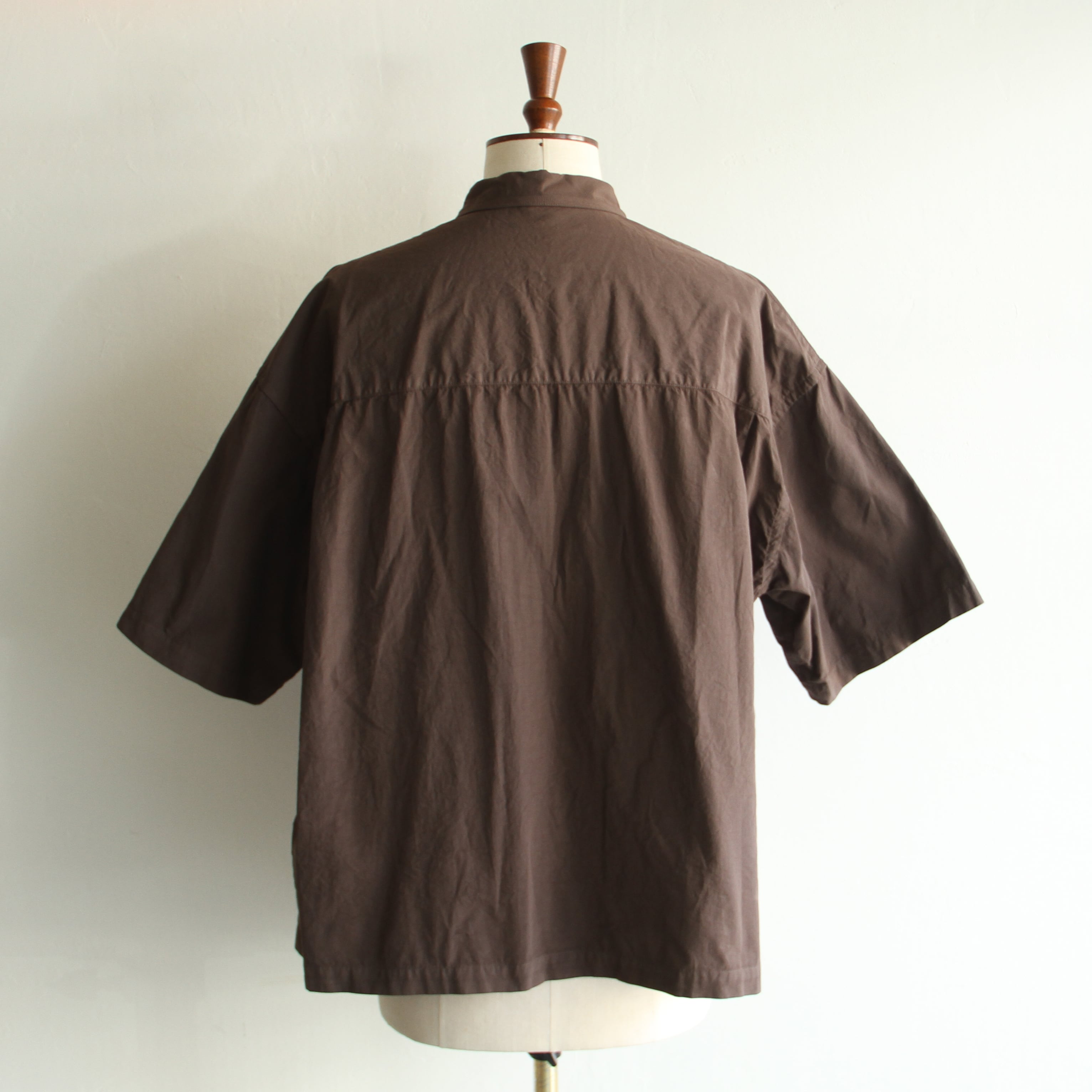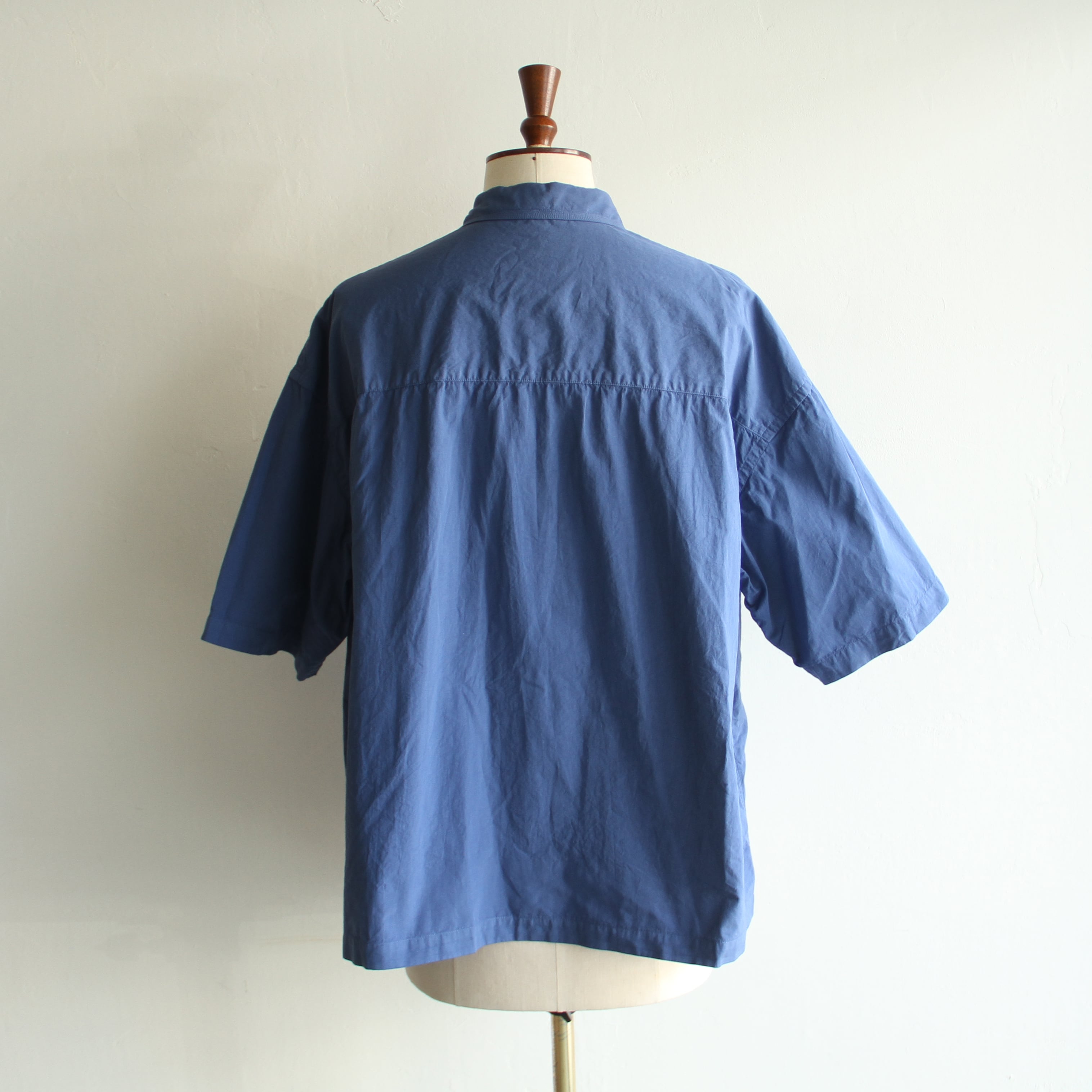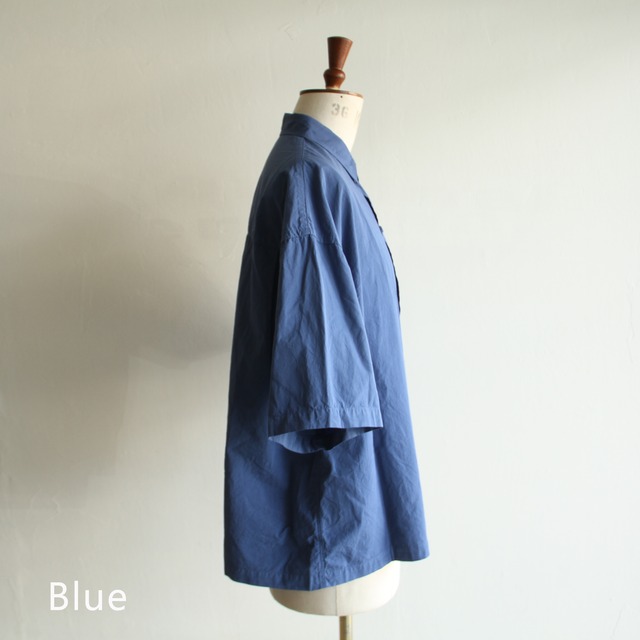 細番手の綿素材に特殊加工を施した生地を使用した製品染の半袖シャツ。