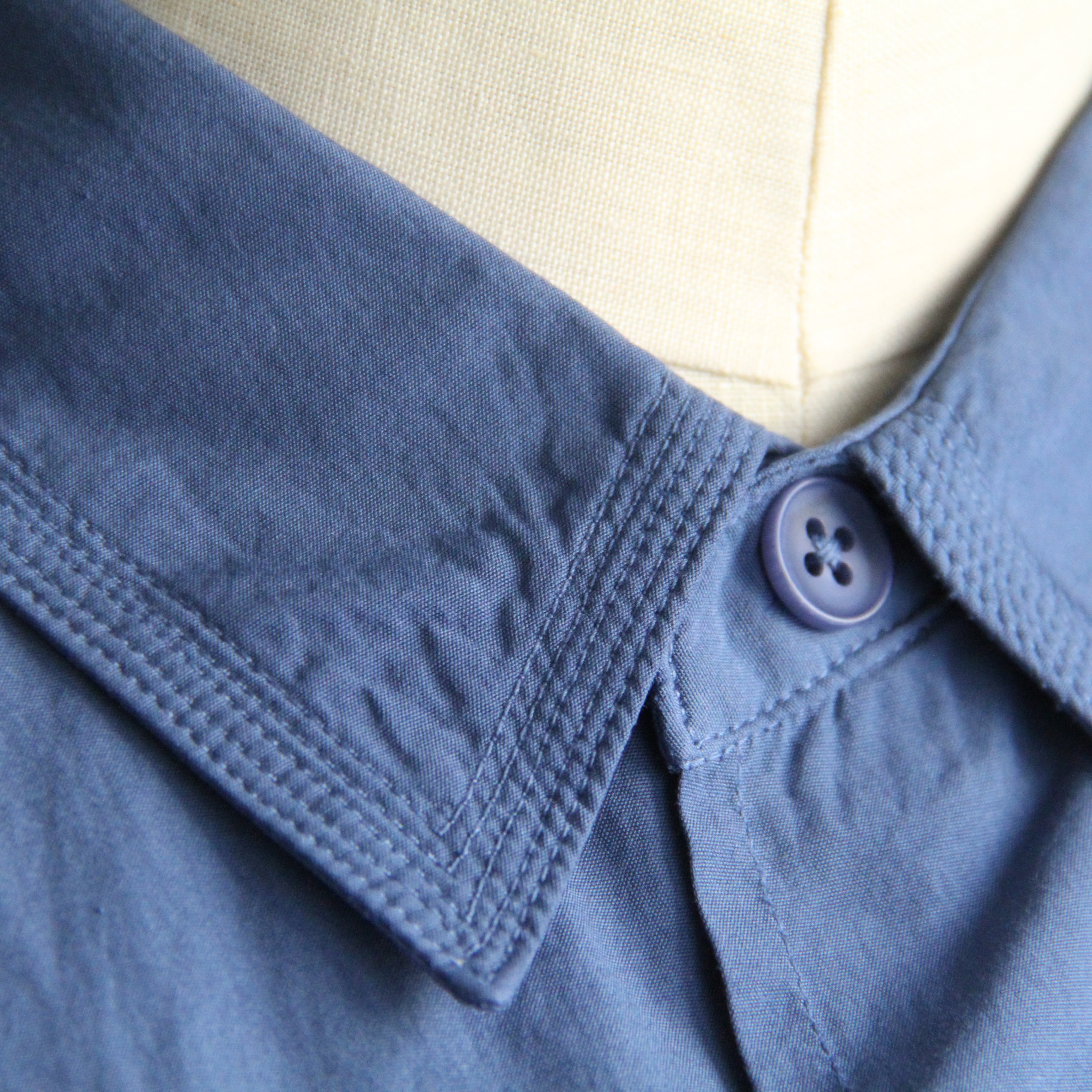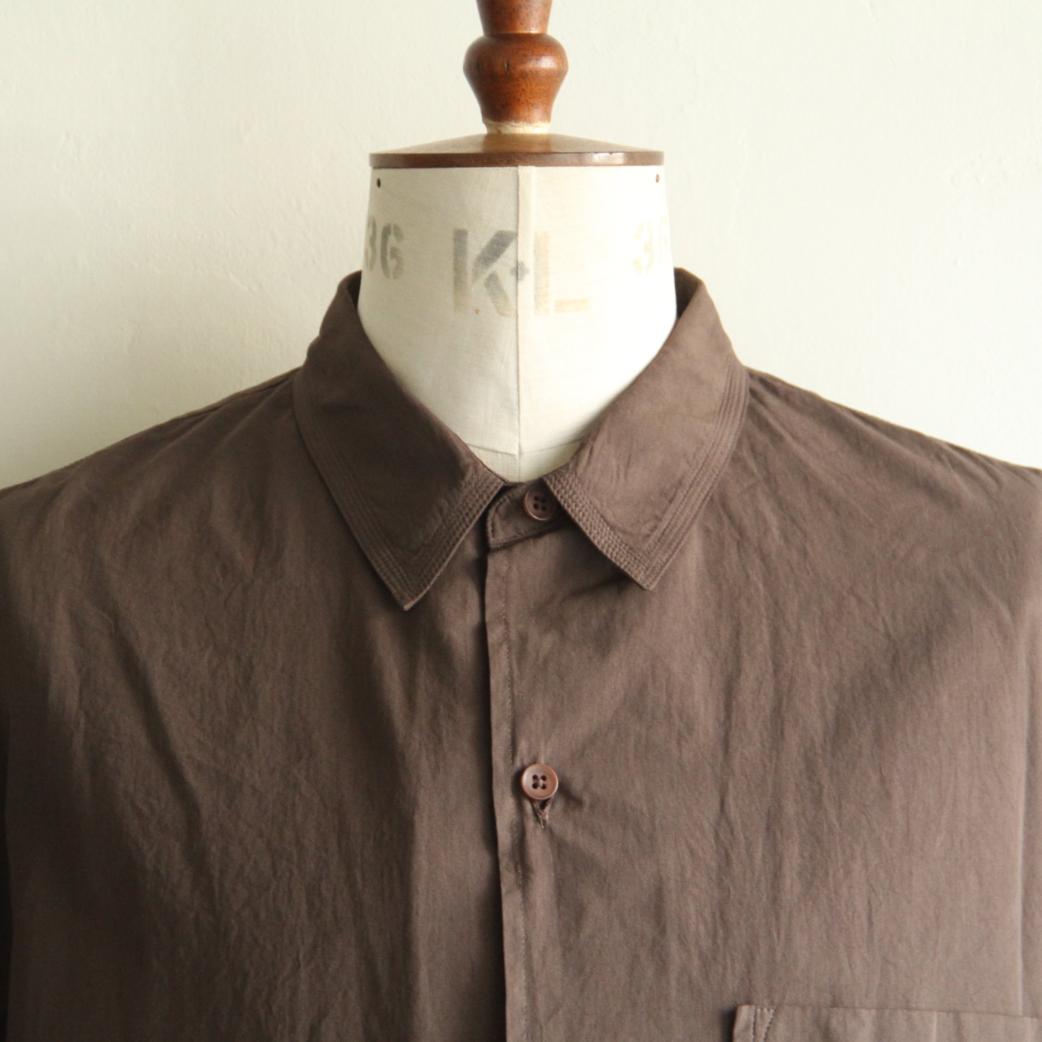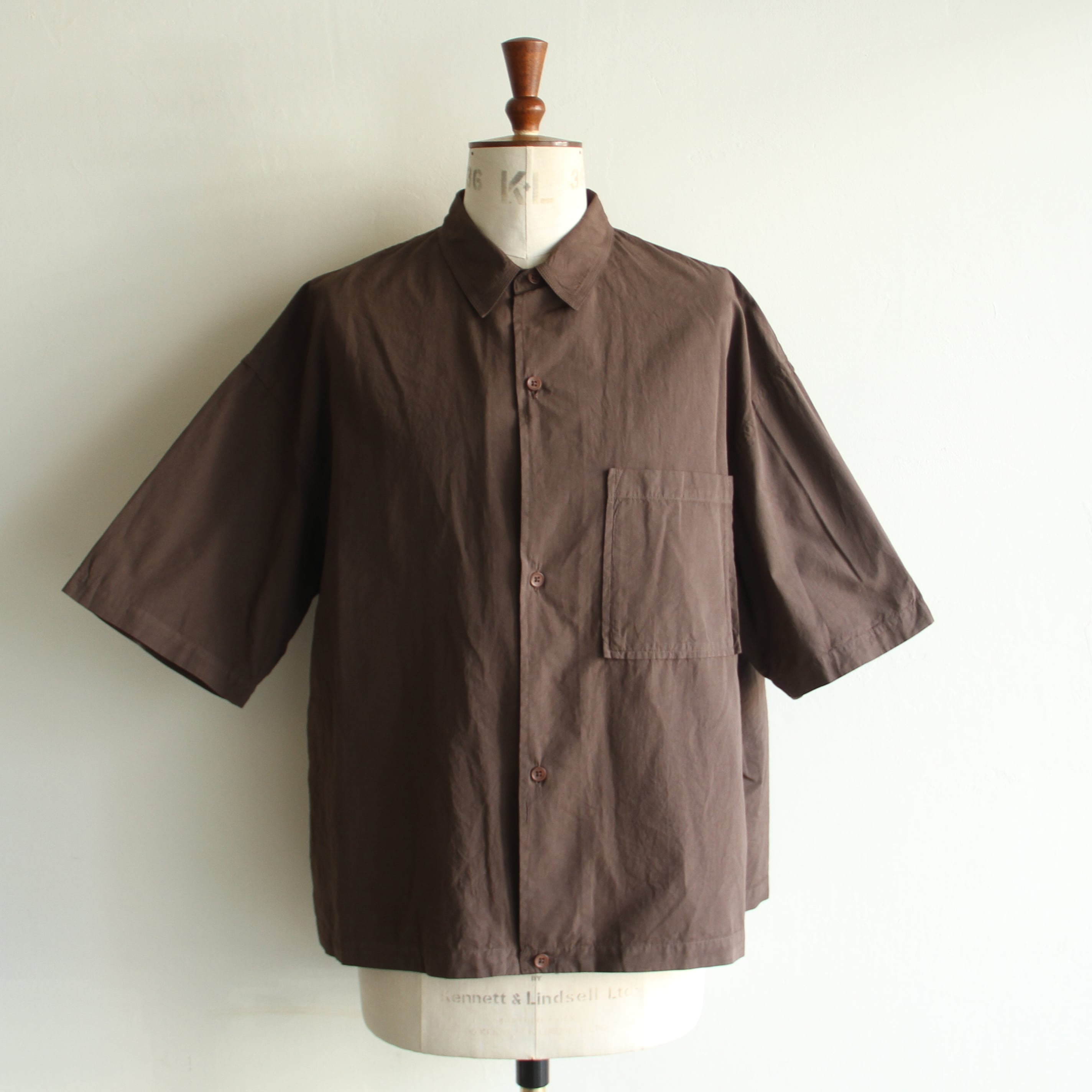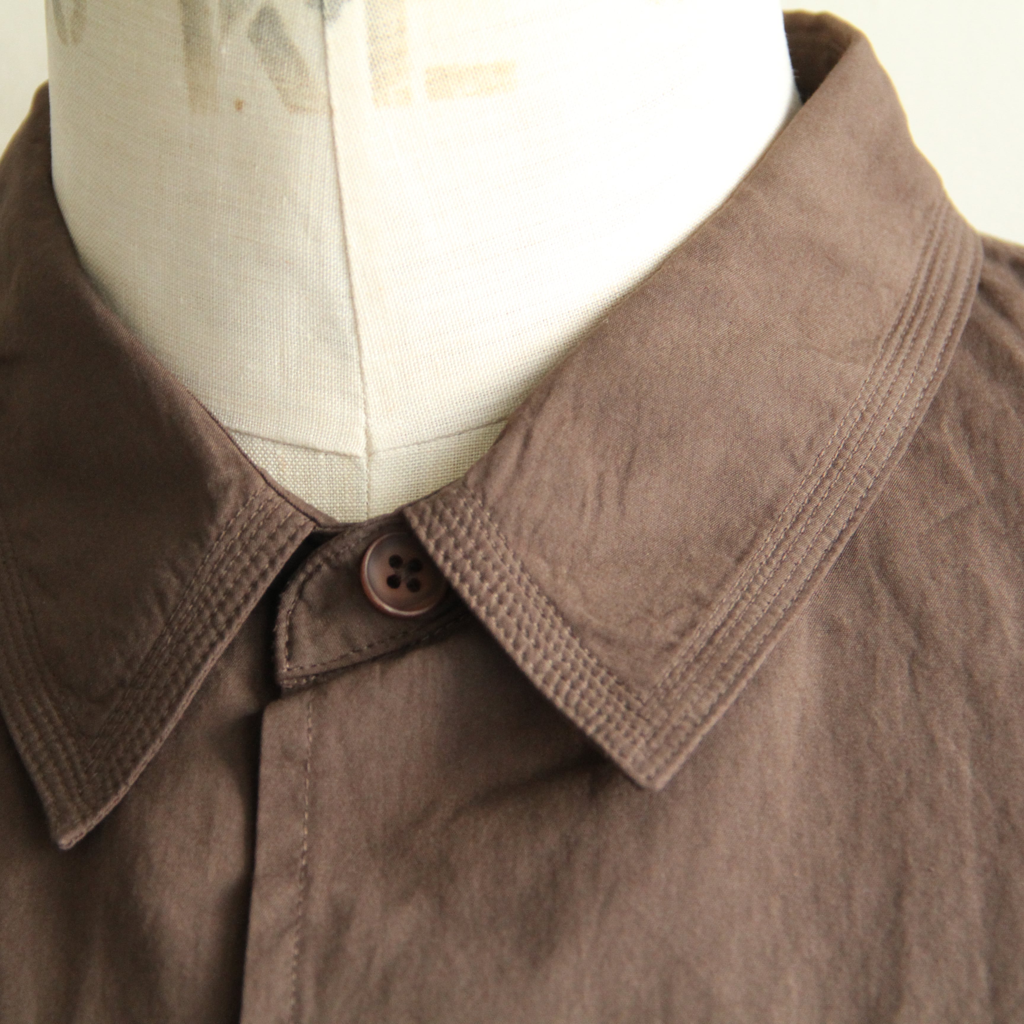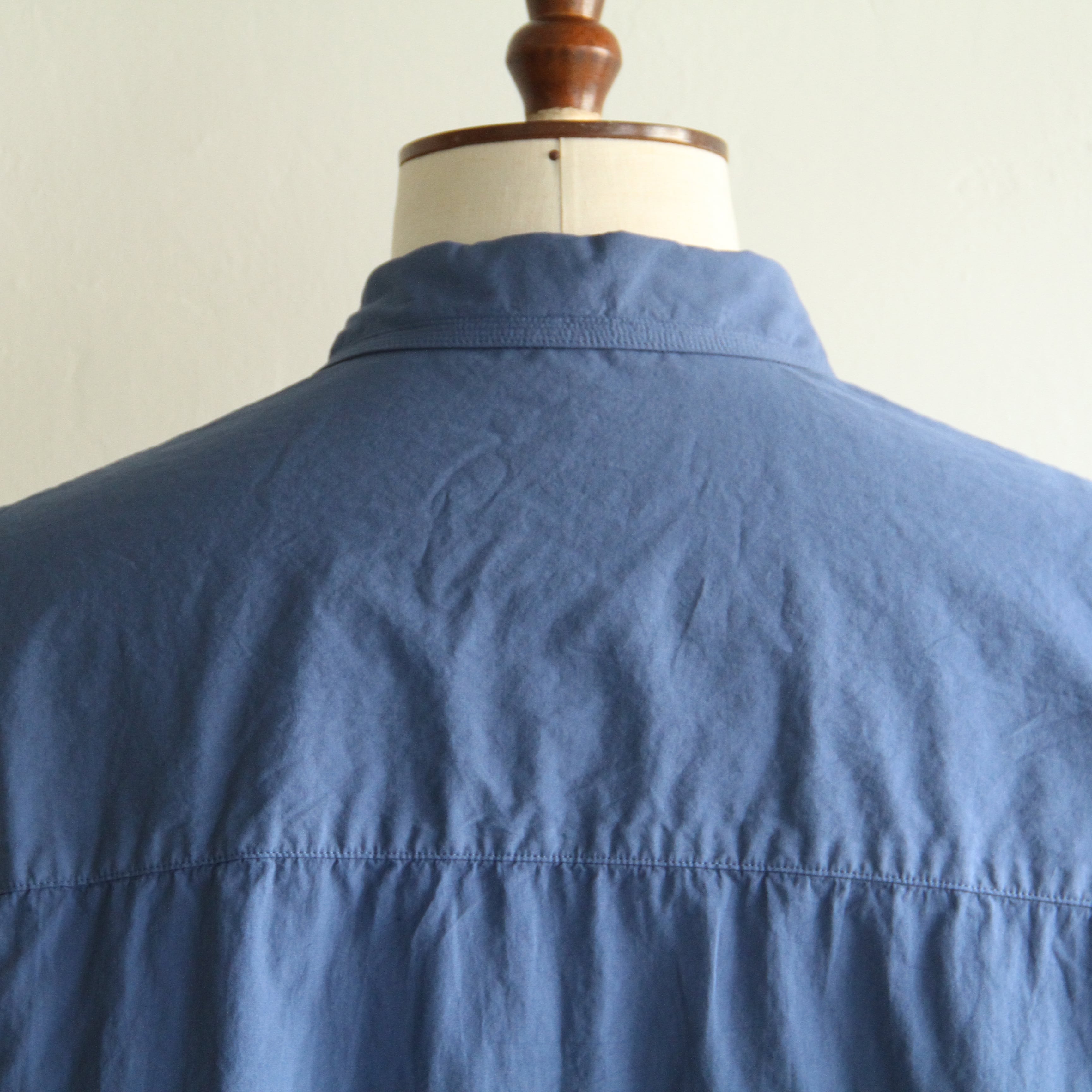 細番手の綿素材に特殊加工を施した生地を使用した製品染の半袖シャツ。