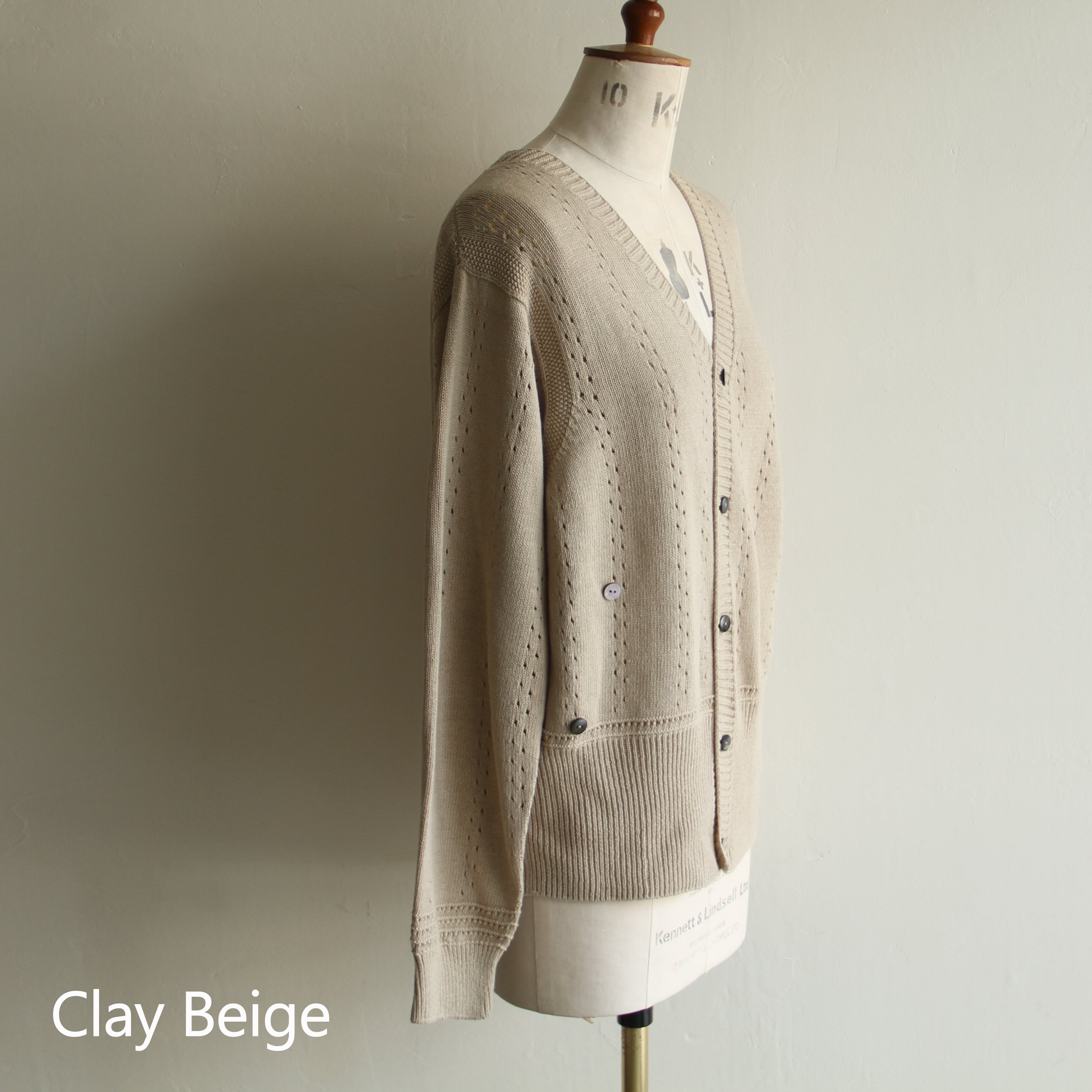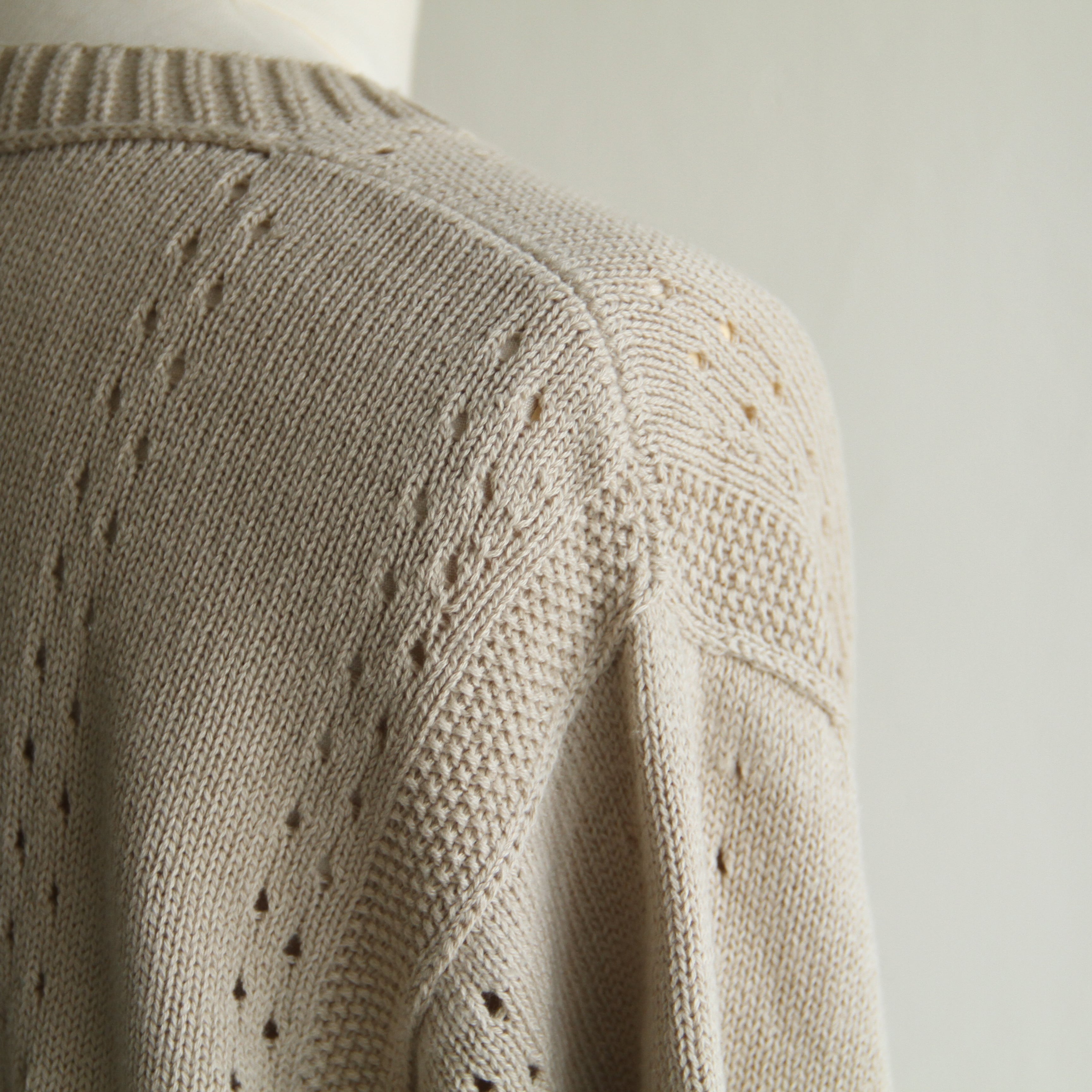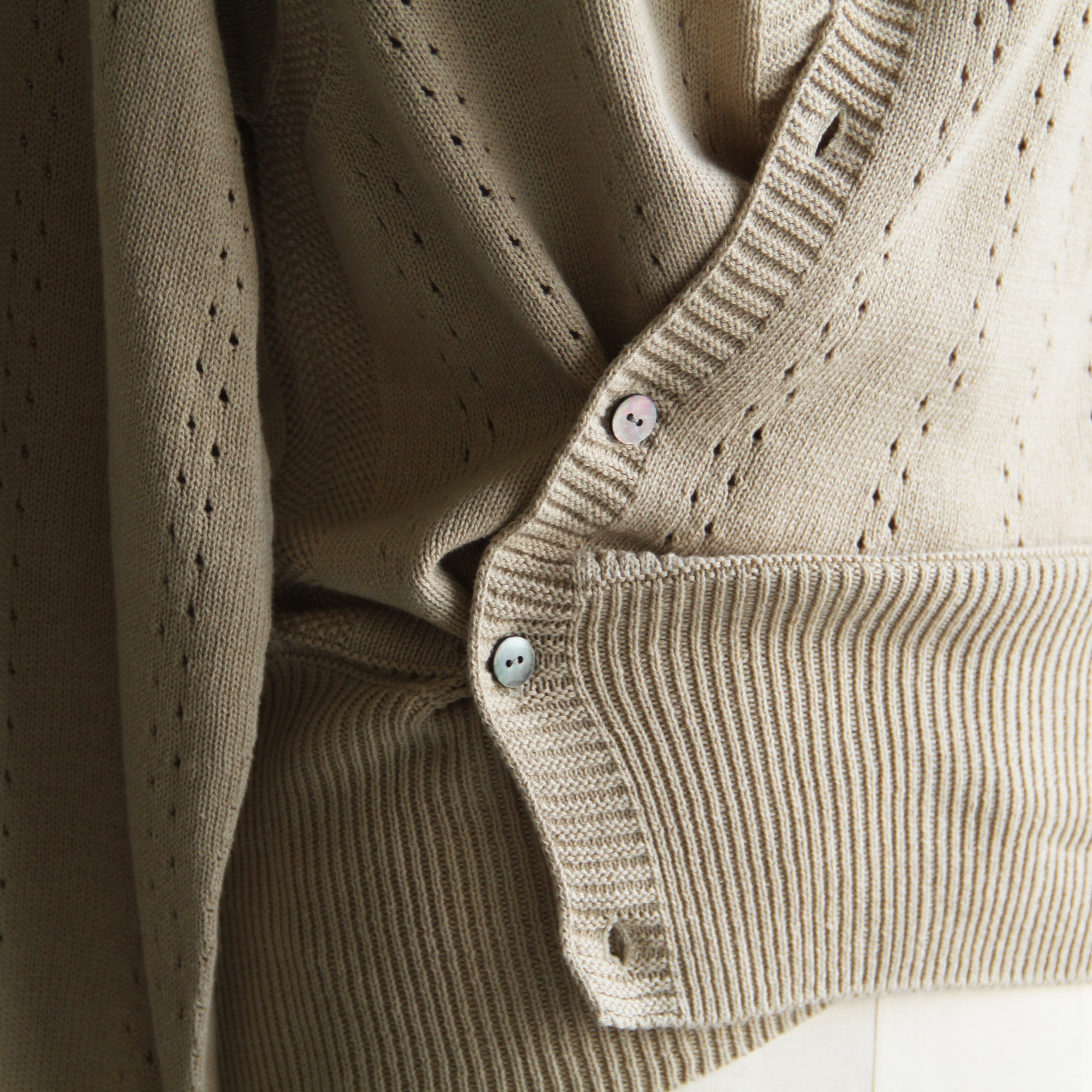 コットンのざっくりした質感が可愛い、華奢さと無骨さを合わせたニットカーディガンです。