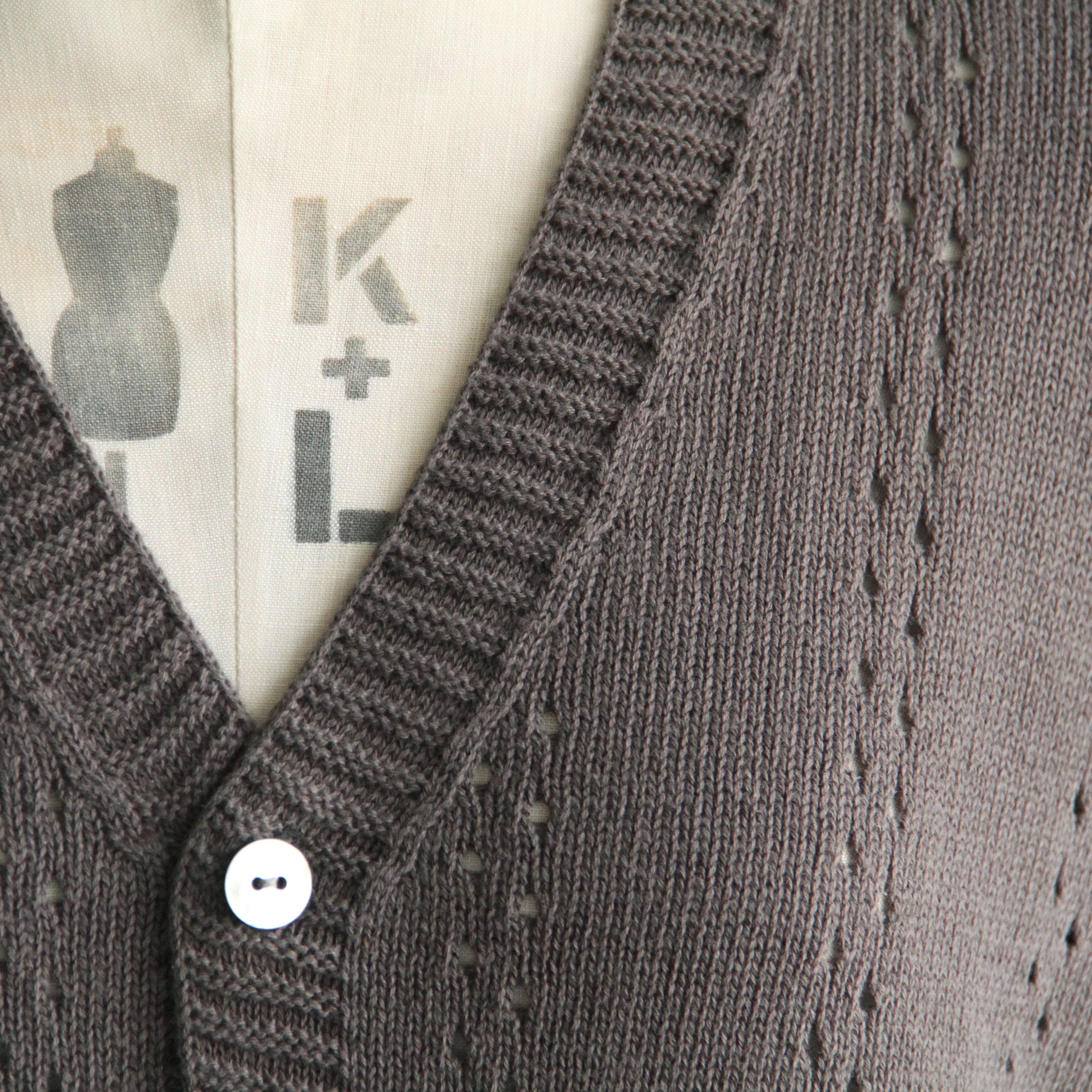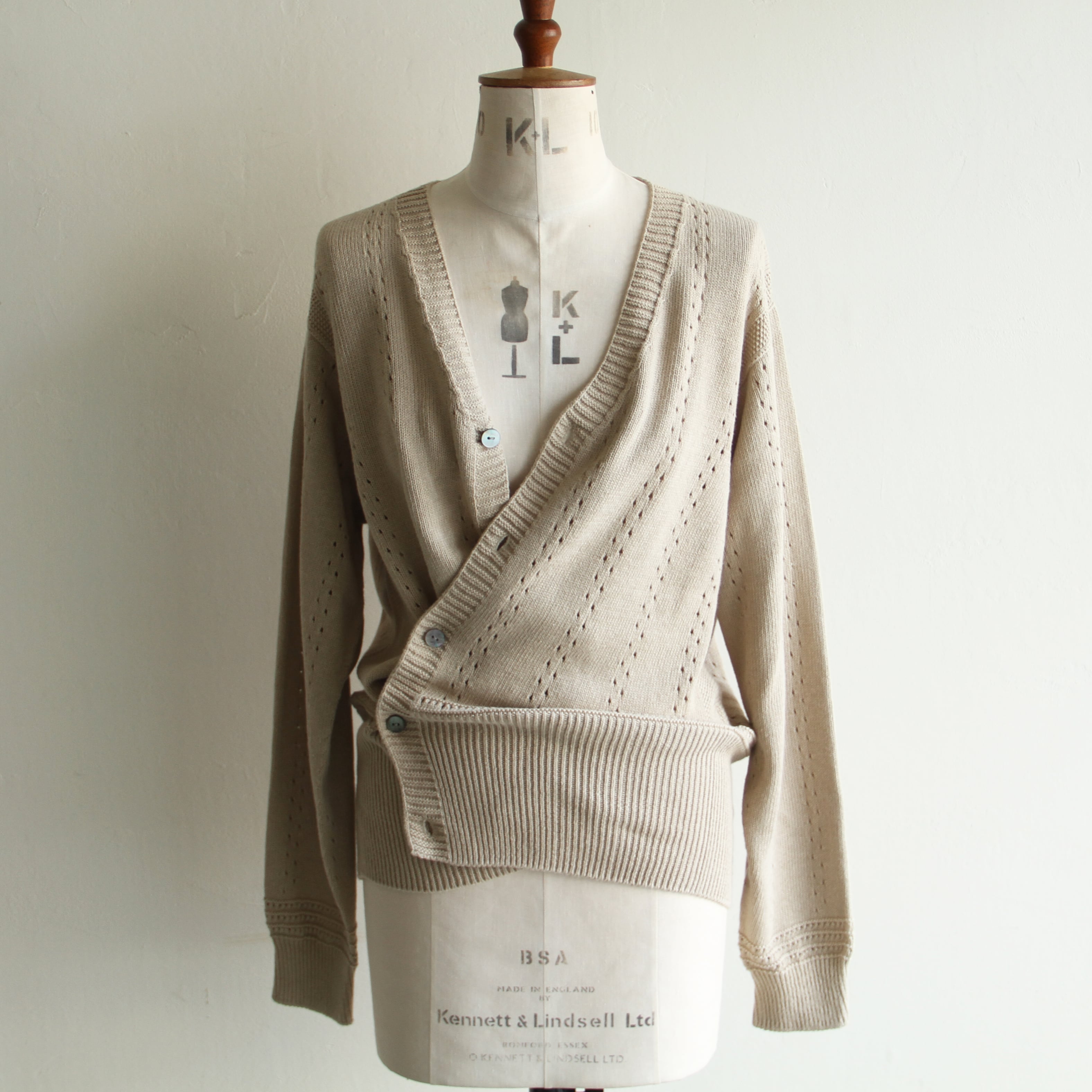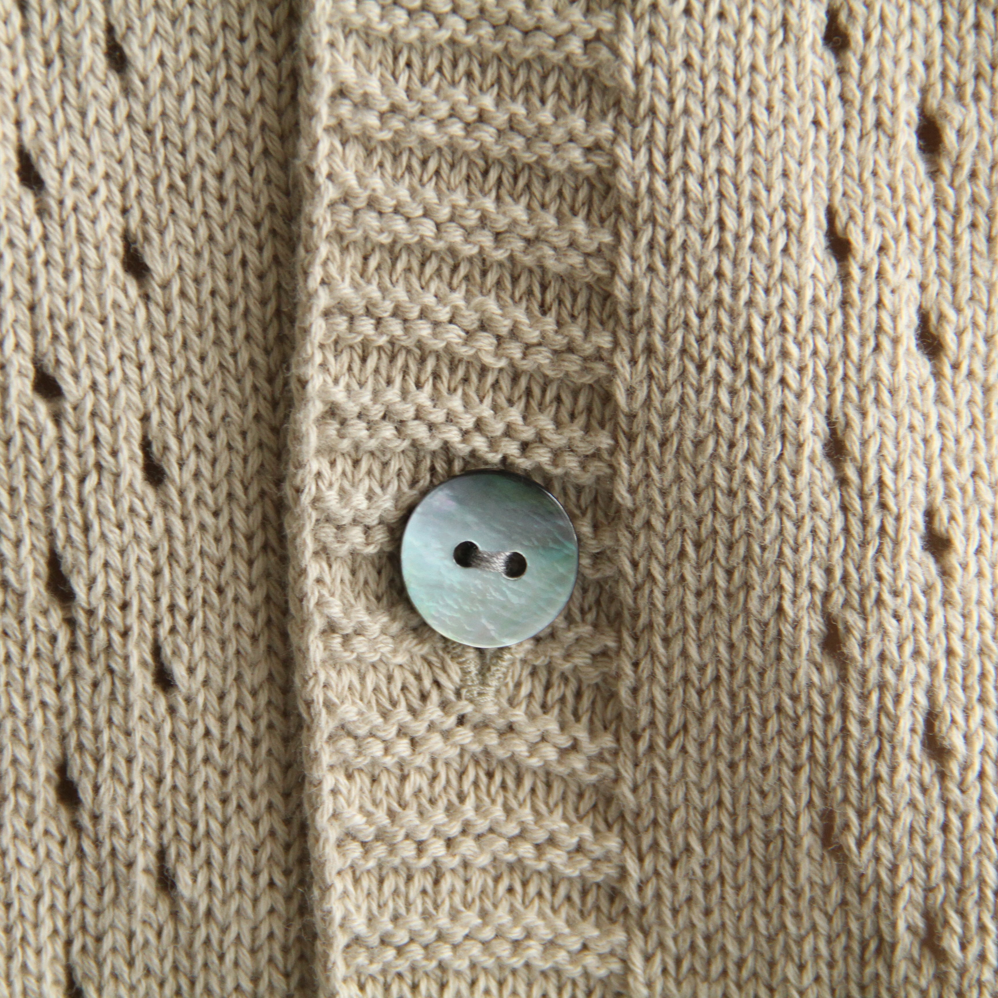 コットンのざっくりした質感が可愛い、華奢さと無骨さを合わせたニットカーディガンです。