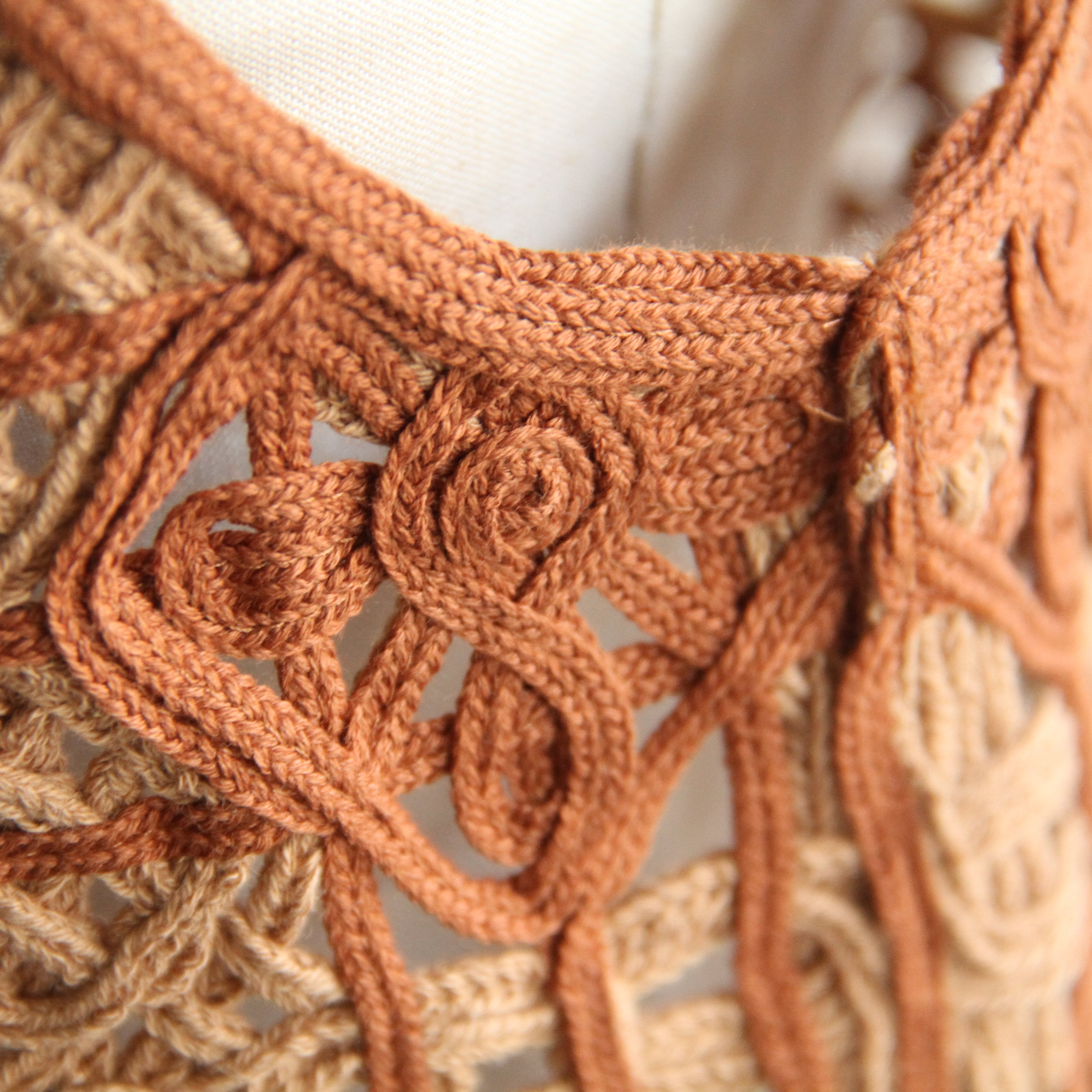 ブークレヤーンに特殊なギマ加工を施し、麻のような清涼感を持たせた糸と、柔らかく自然な艶をもつコットン糸の2種類を組み合わせて作った、普遍的なコー ド刺繍の生地です。 水に溶ける不織布に刺繍を施し、パーツごとに形成してから縫製することで、立体感のある仕上がりに。見た目はニットのようでいて、実はまったく異なる手法で生まれた特別なアイテムです。