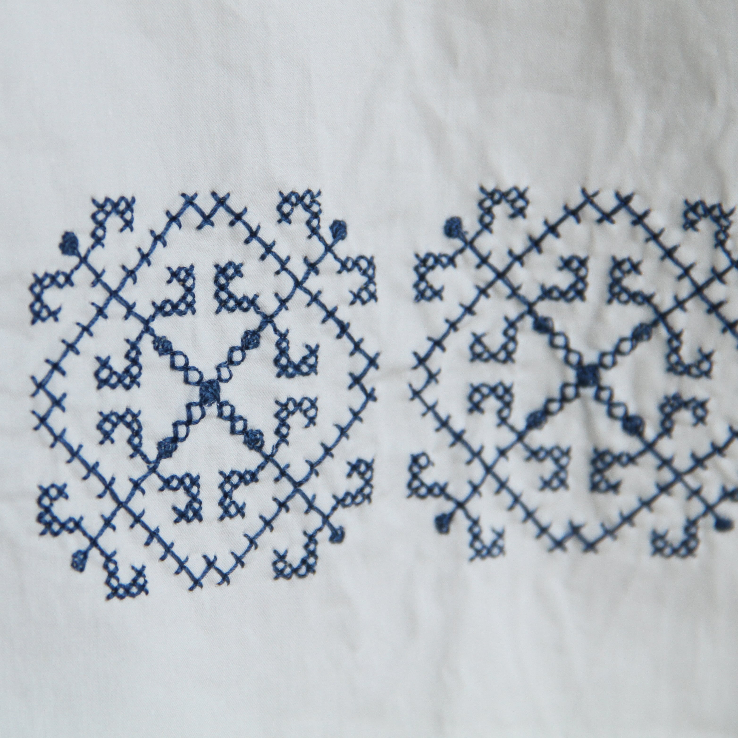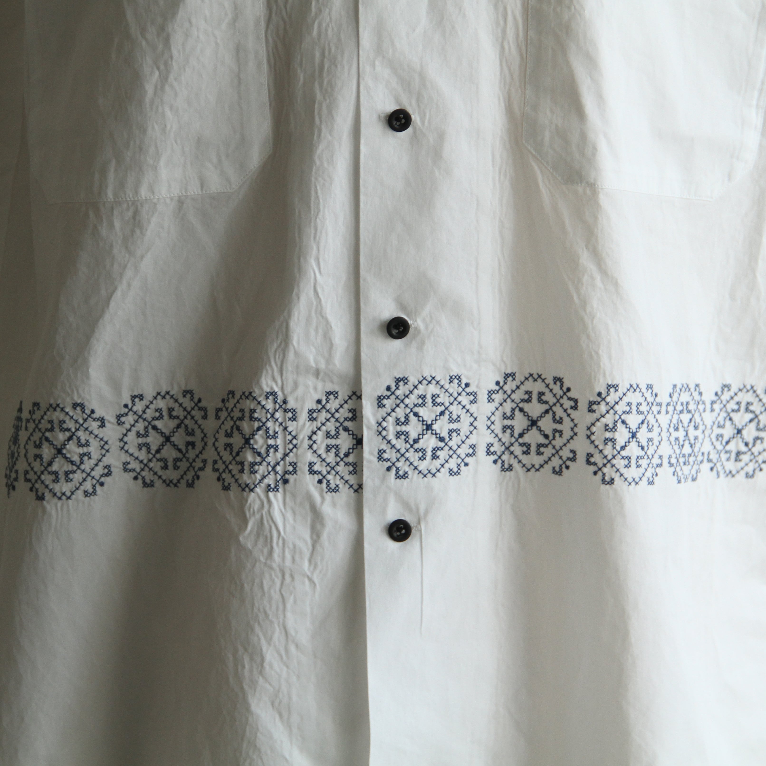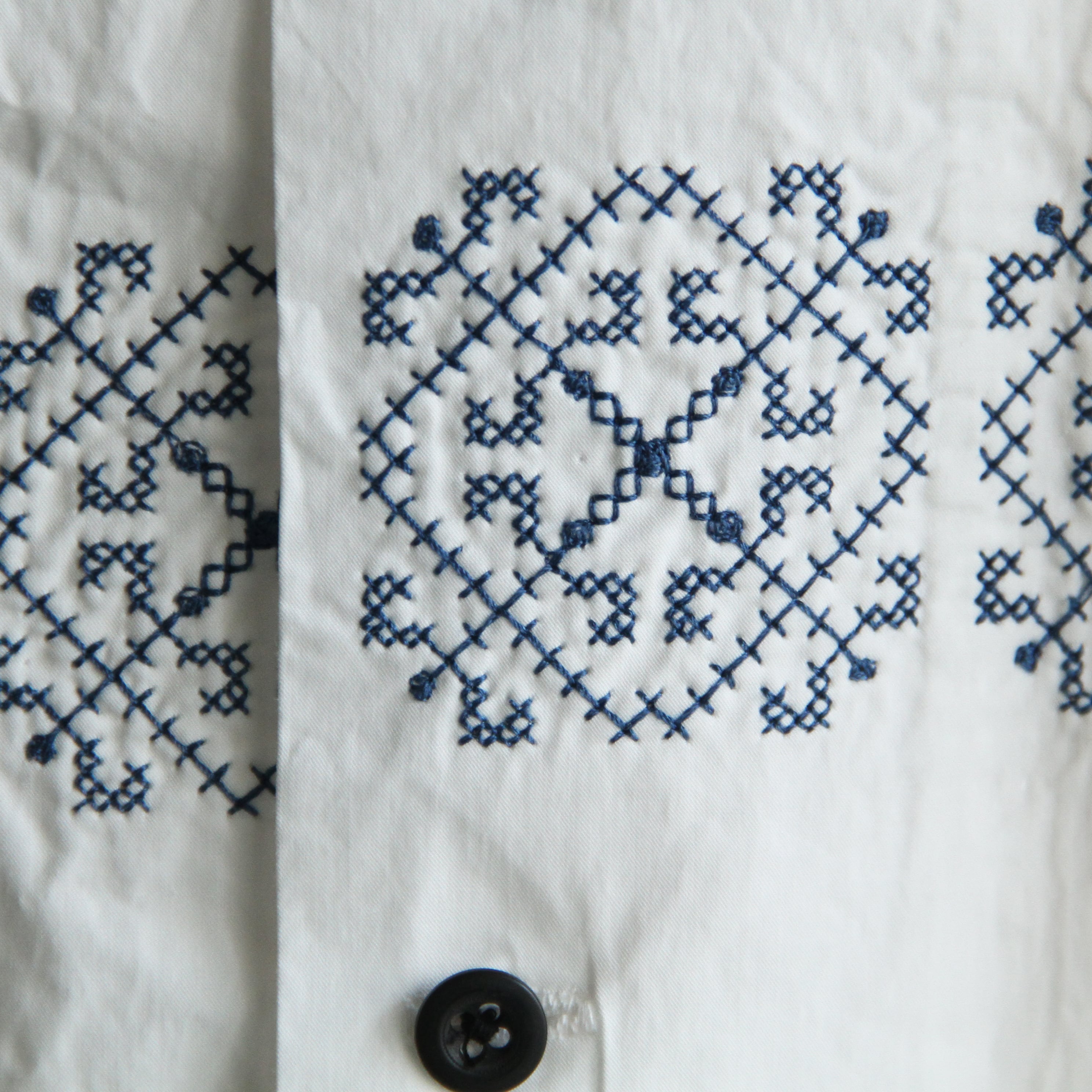 刺繍の柄は1930年代フランスのバカンス用シャツに施されていたクロス刺繍を元にデザイン。