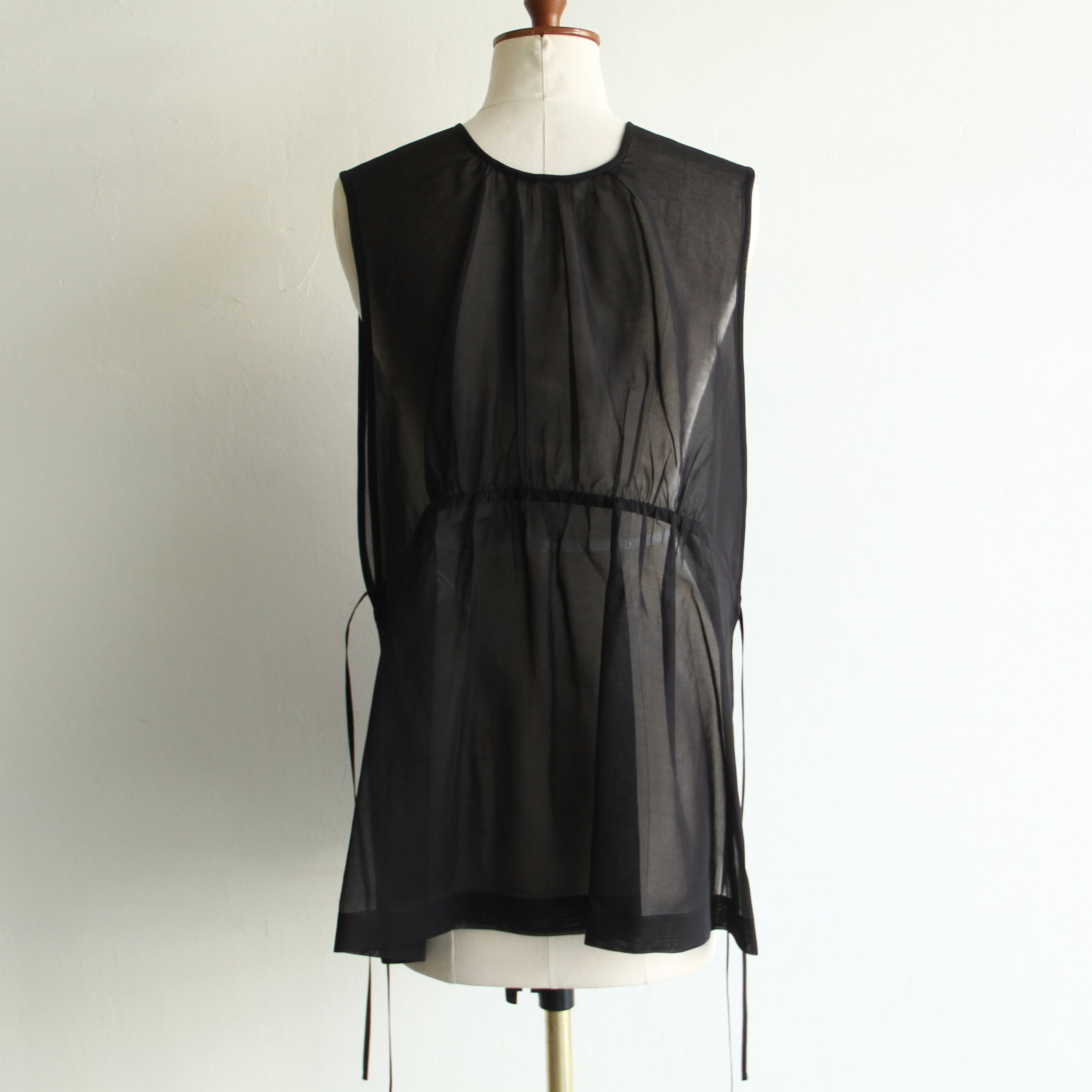 コットン100%のオーガンジー素材を使用した、透け感が美しいシャツブラウス。