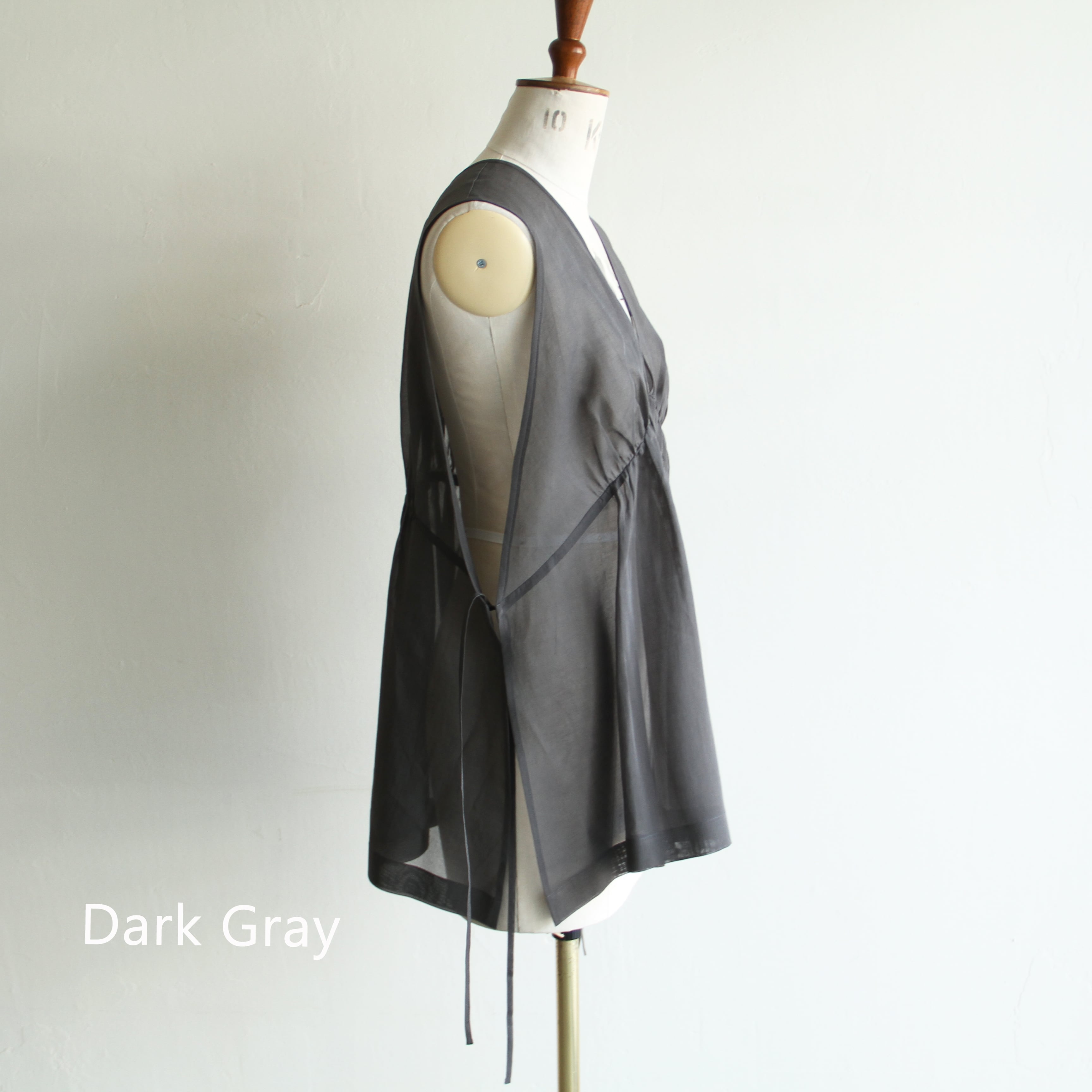 サイドの開きが抜け感を加え、紐を緩く結んで垂らしたり、リボン結びにしたり雰囲気の変化もお楽しみいただけます。