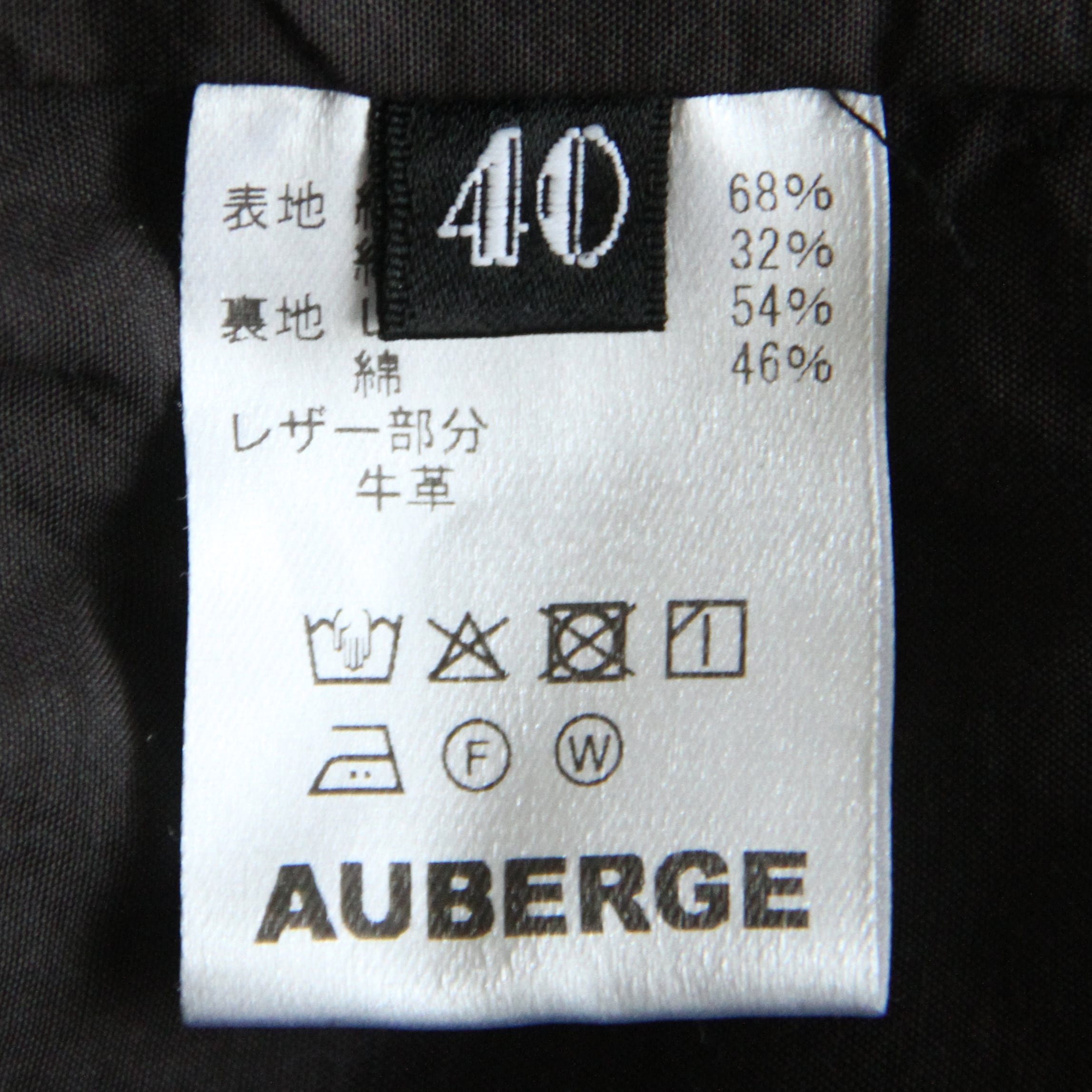 素材 : (表地)COTTON 68% / SILK 32%(裏地)RAYON 54% / COTTON 46%(レザー部分)牛革