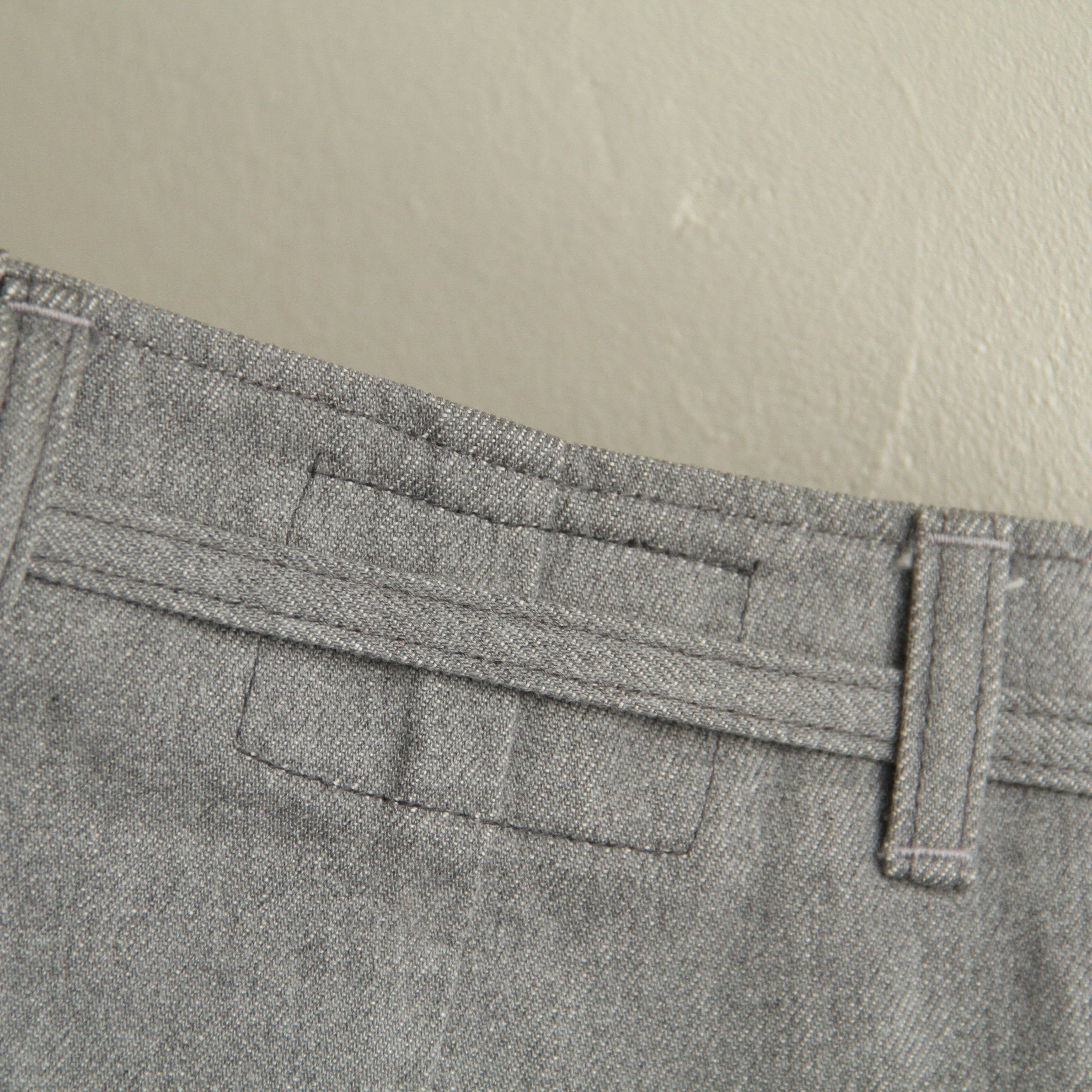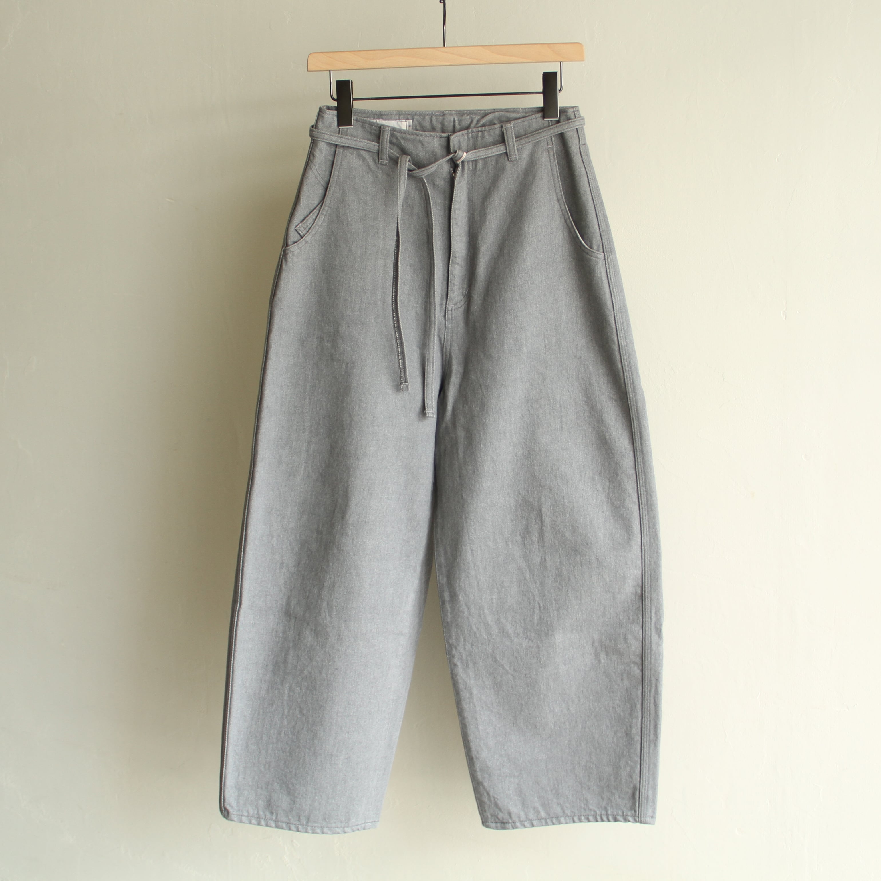 佇まいがソリッドで印象的なフォルムになるように外側に向かって丸いカーブのパターンに設計されています。股下は少し短めの設定でくるぶしが見えるくらいの丈をイメージしています。