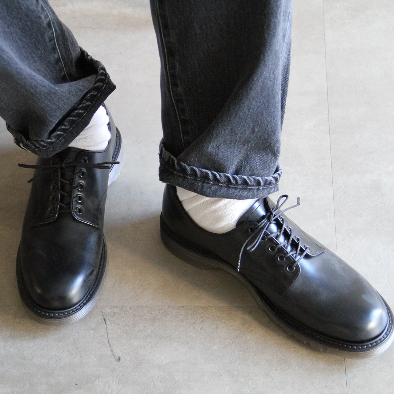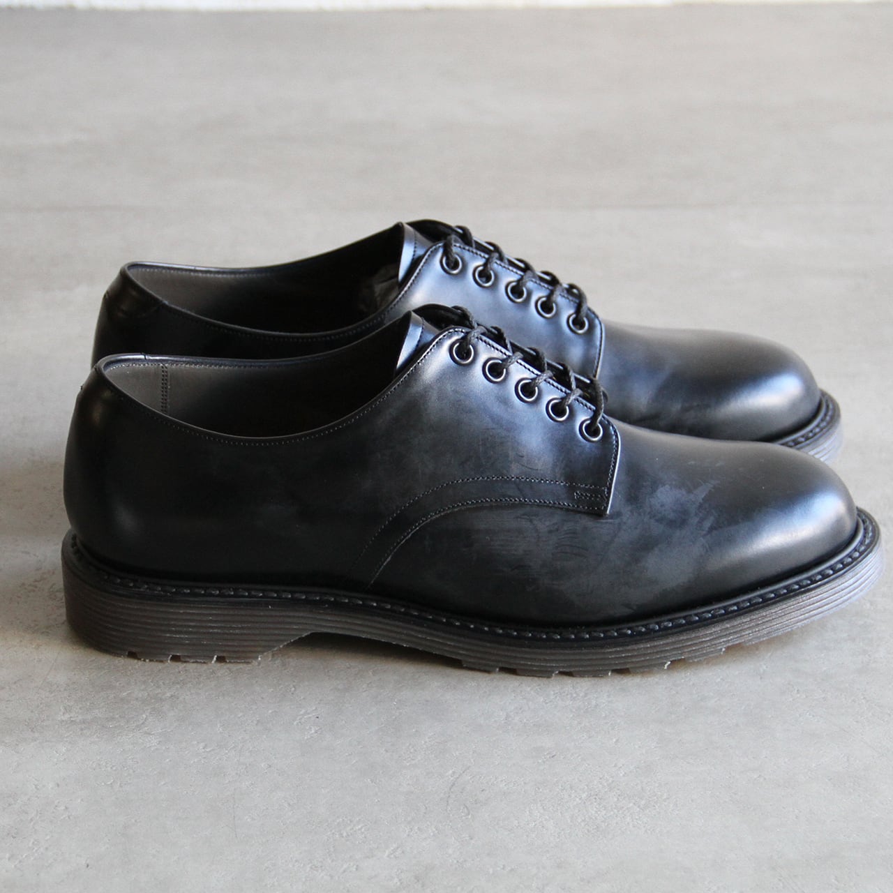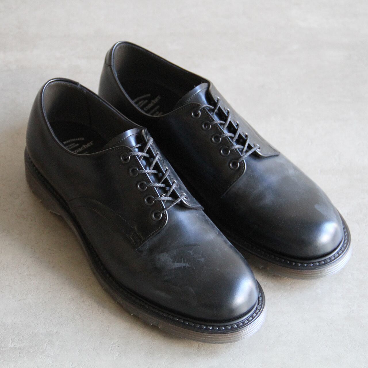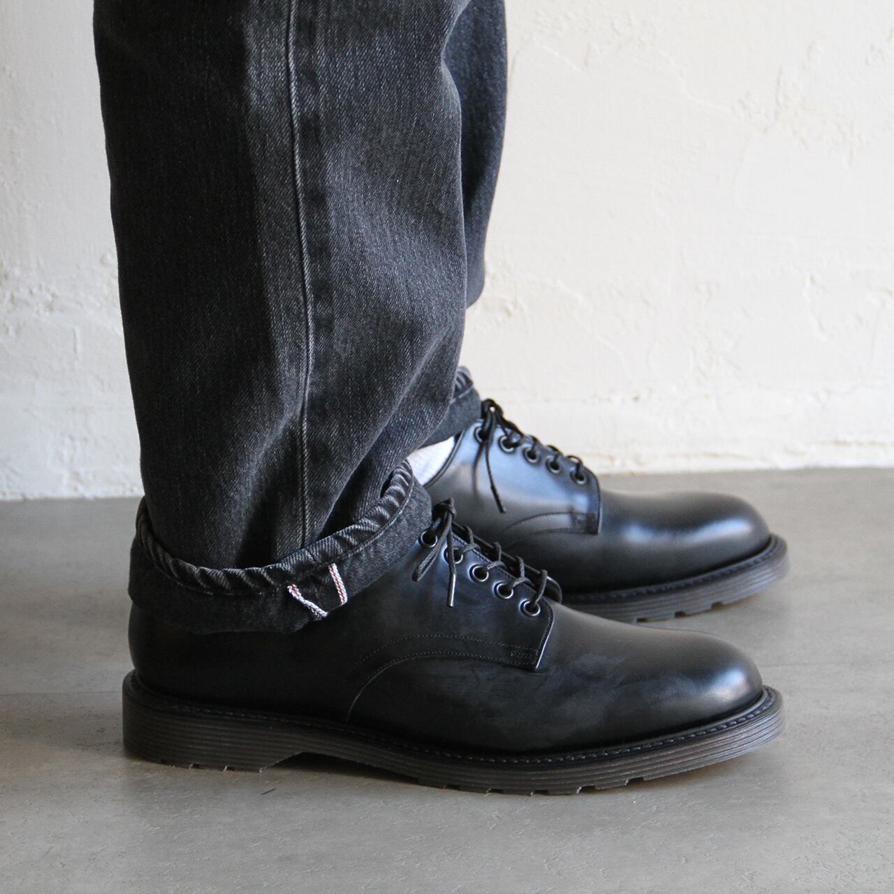 クセのないプレーントゥのデザインは、かつてのロンドンカルチャーの足元を彷彿とさせる仕上がり。
