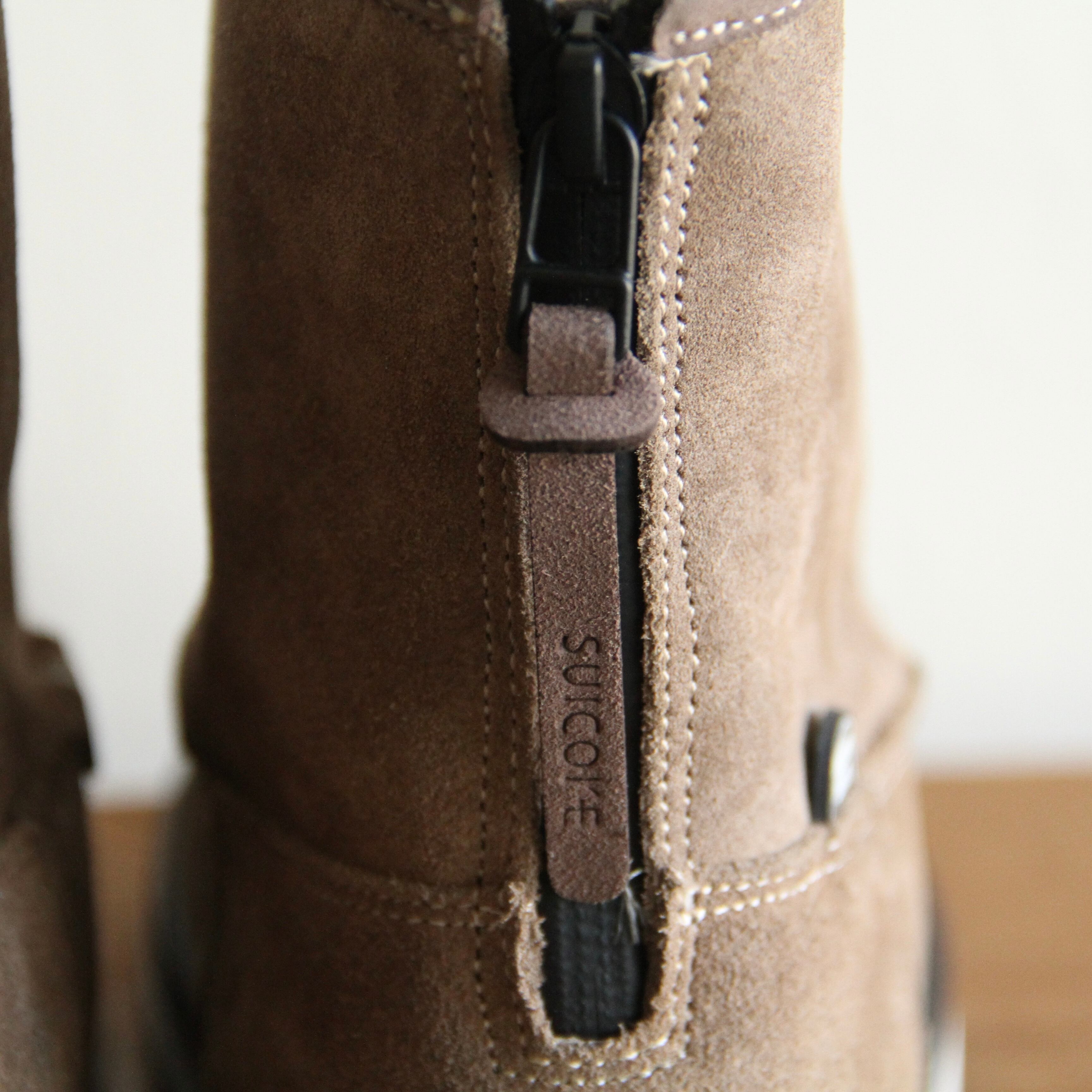 牛革スエードのアッパー、ライニングに本革ムートンを採用した「RUSS-Mwpab」。