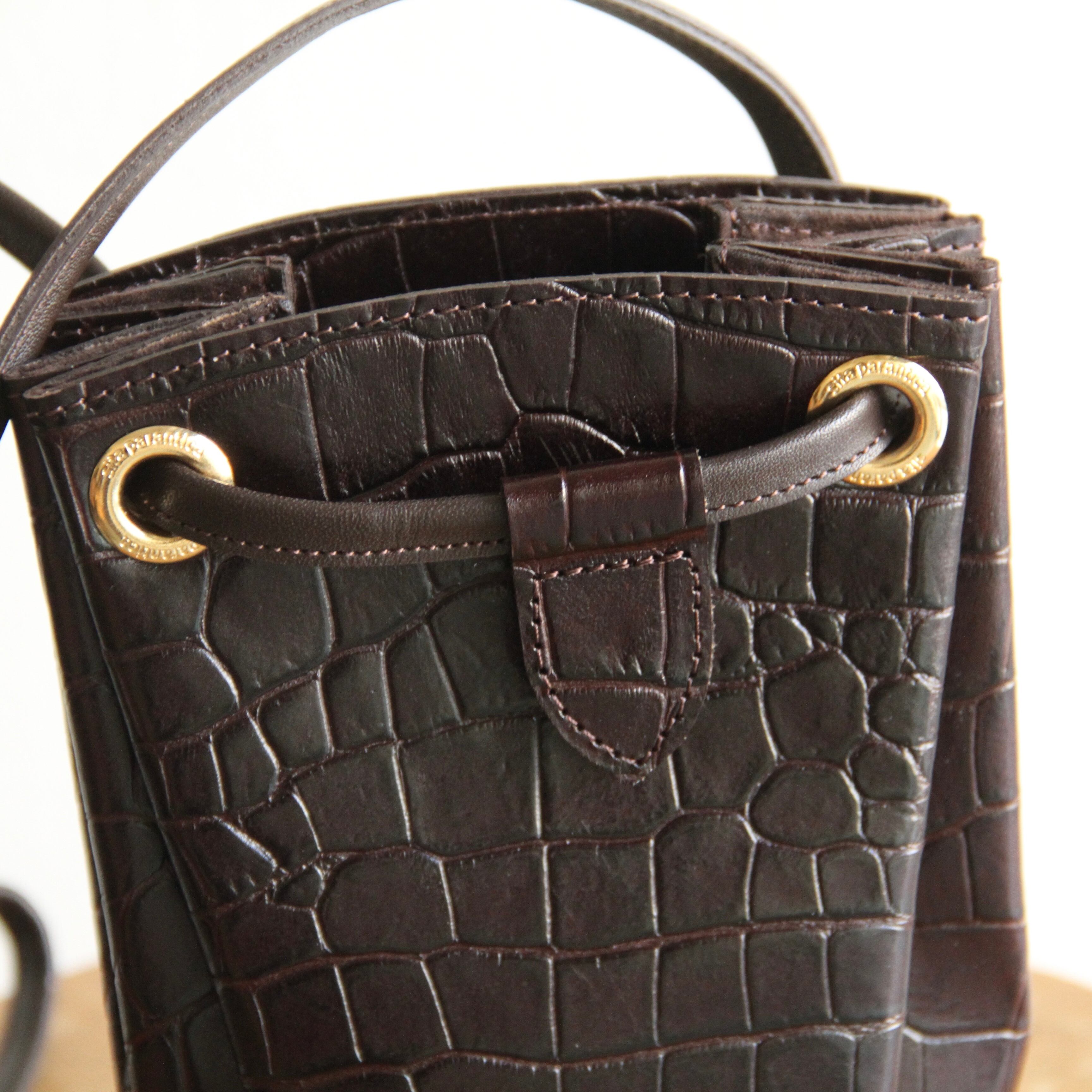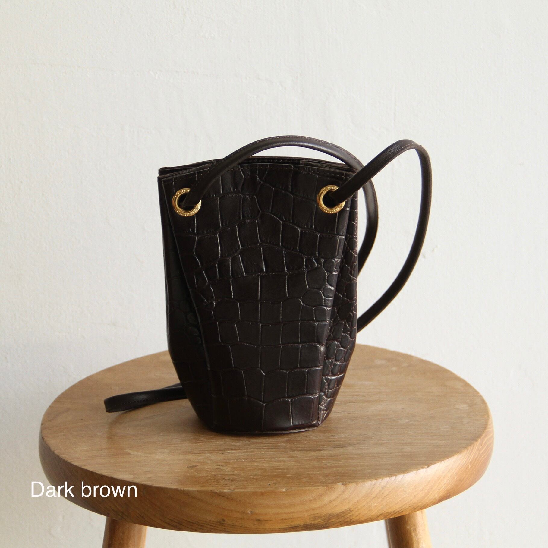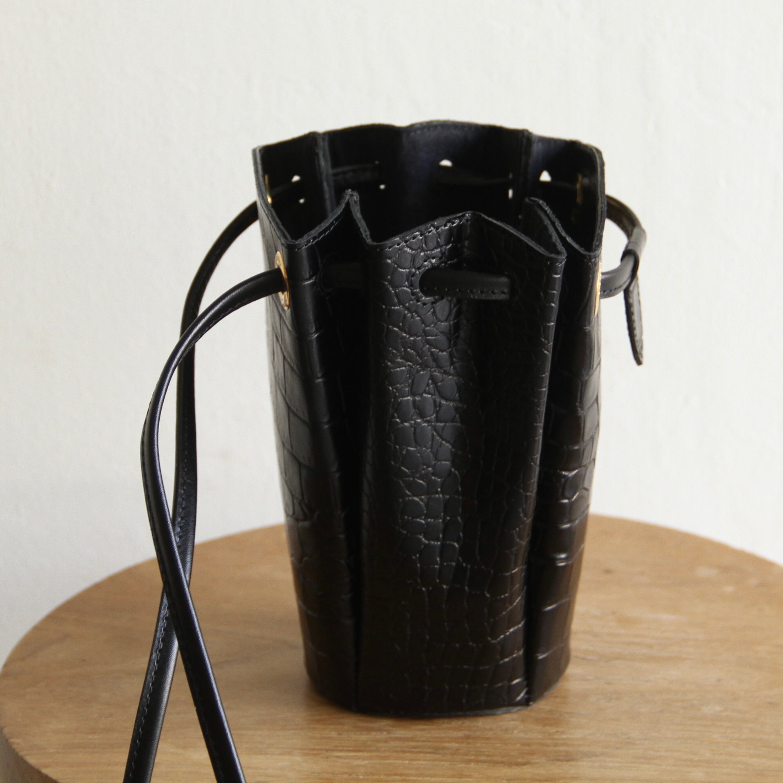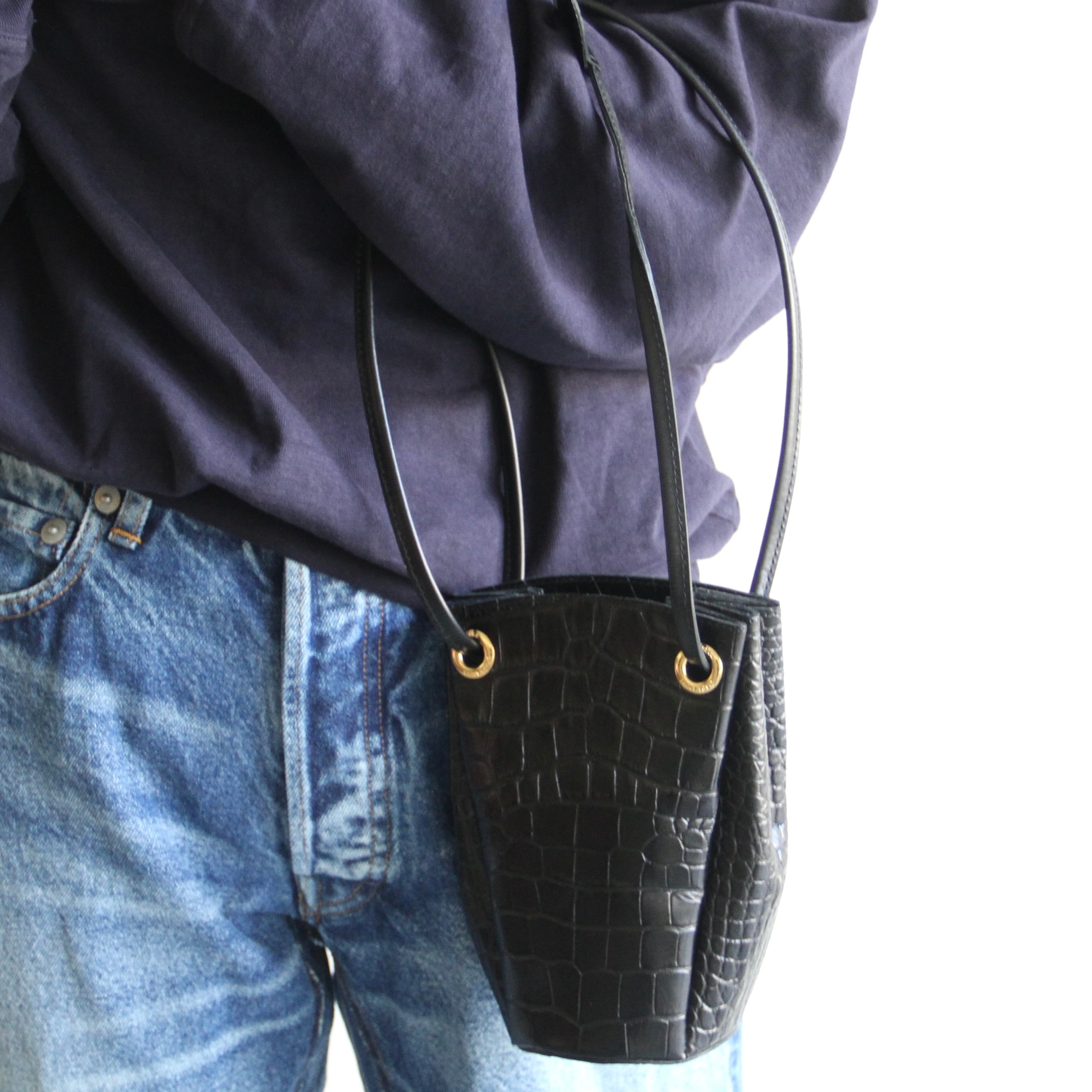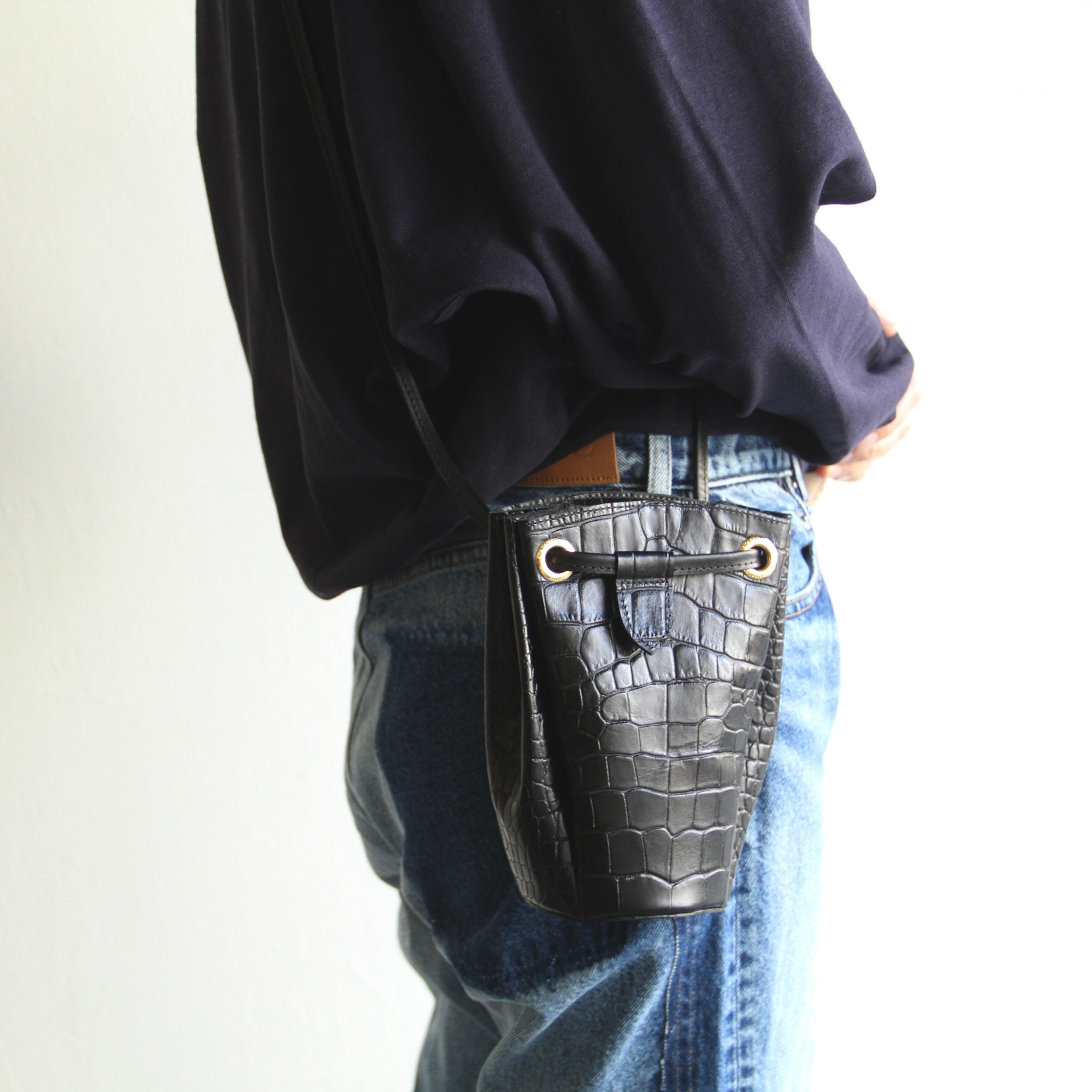 クロコの型押しとゴールドの金具使いが高級感のある雰囲気です。