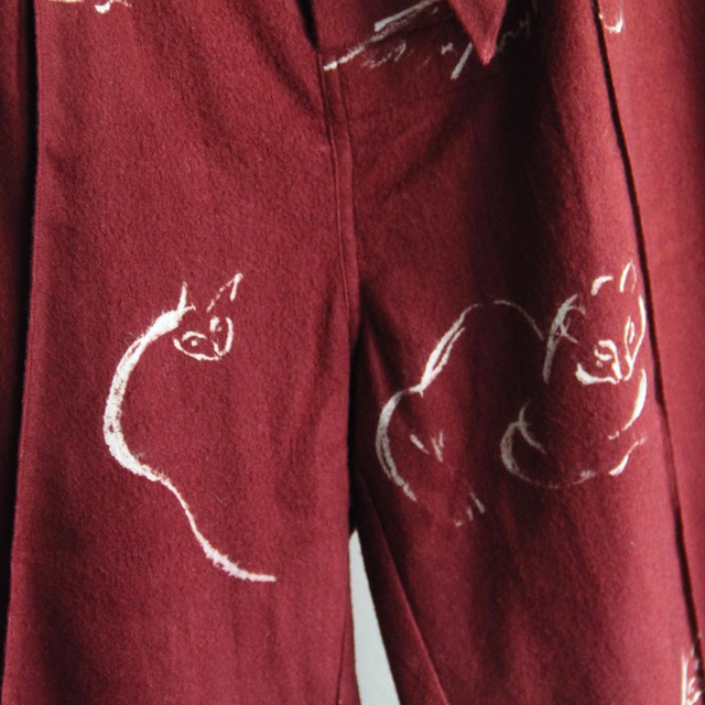 WRYHT のシグネチャーデザインの一つでもあるドローイングテキスタイルを使用したパンツ。デザイナーが敬愛する作品、芸術家に焦点を当て現代的に現代的にハンドドローイングし再構築したテキスタイルです。