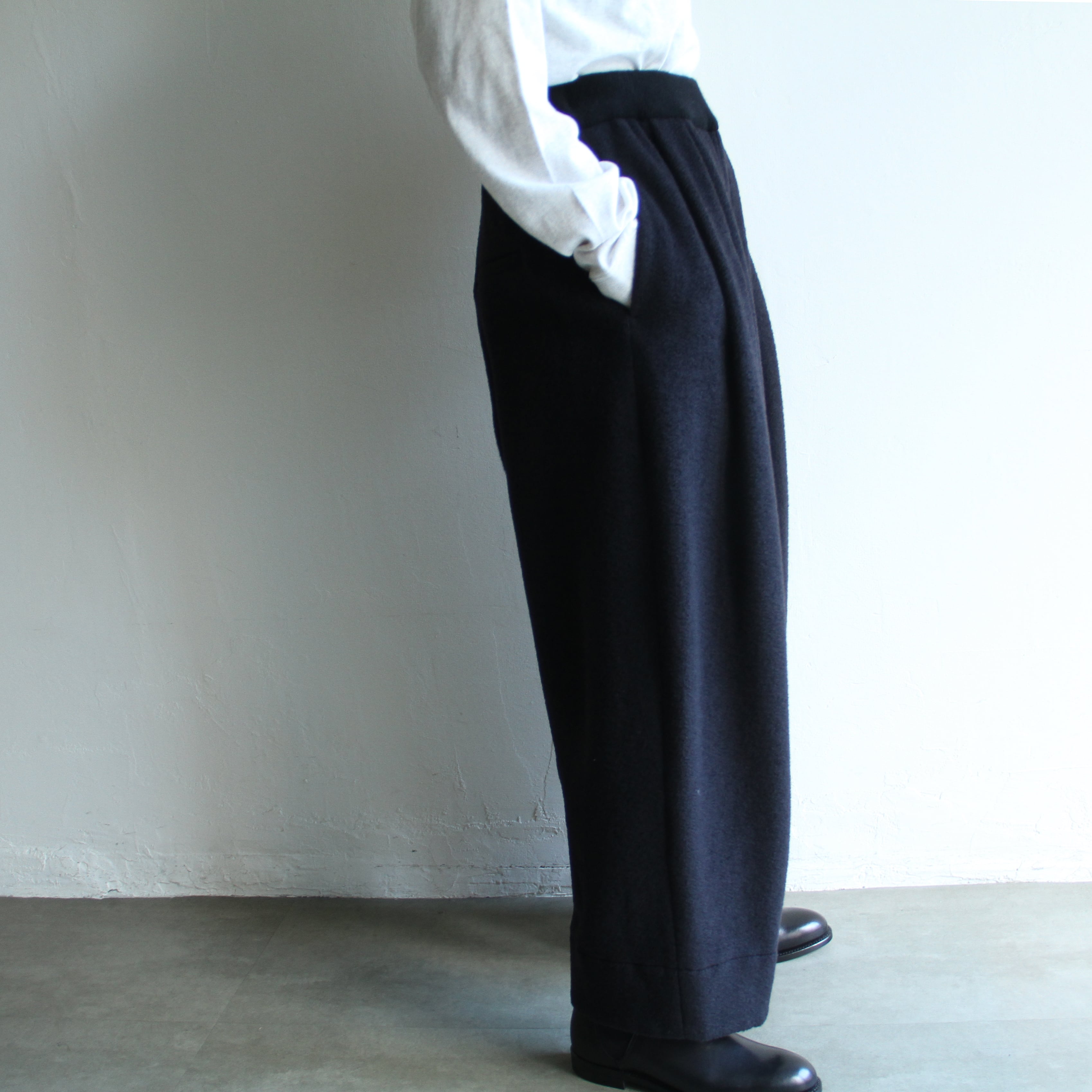 ふんわりと温かい、ウールアンゴラ素材の生地をたっぷりと贅沢に使用したパンツ。