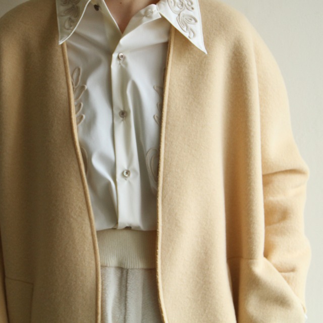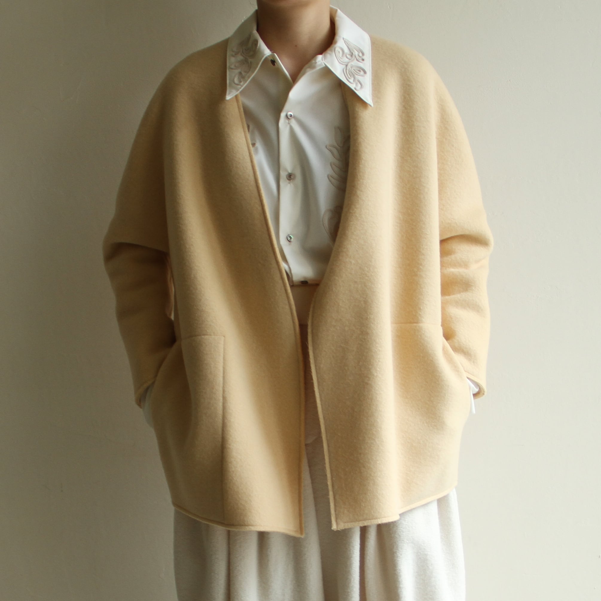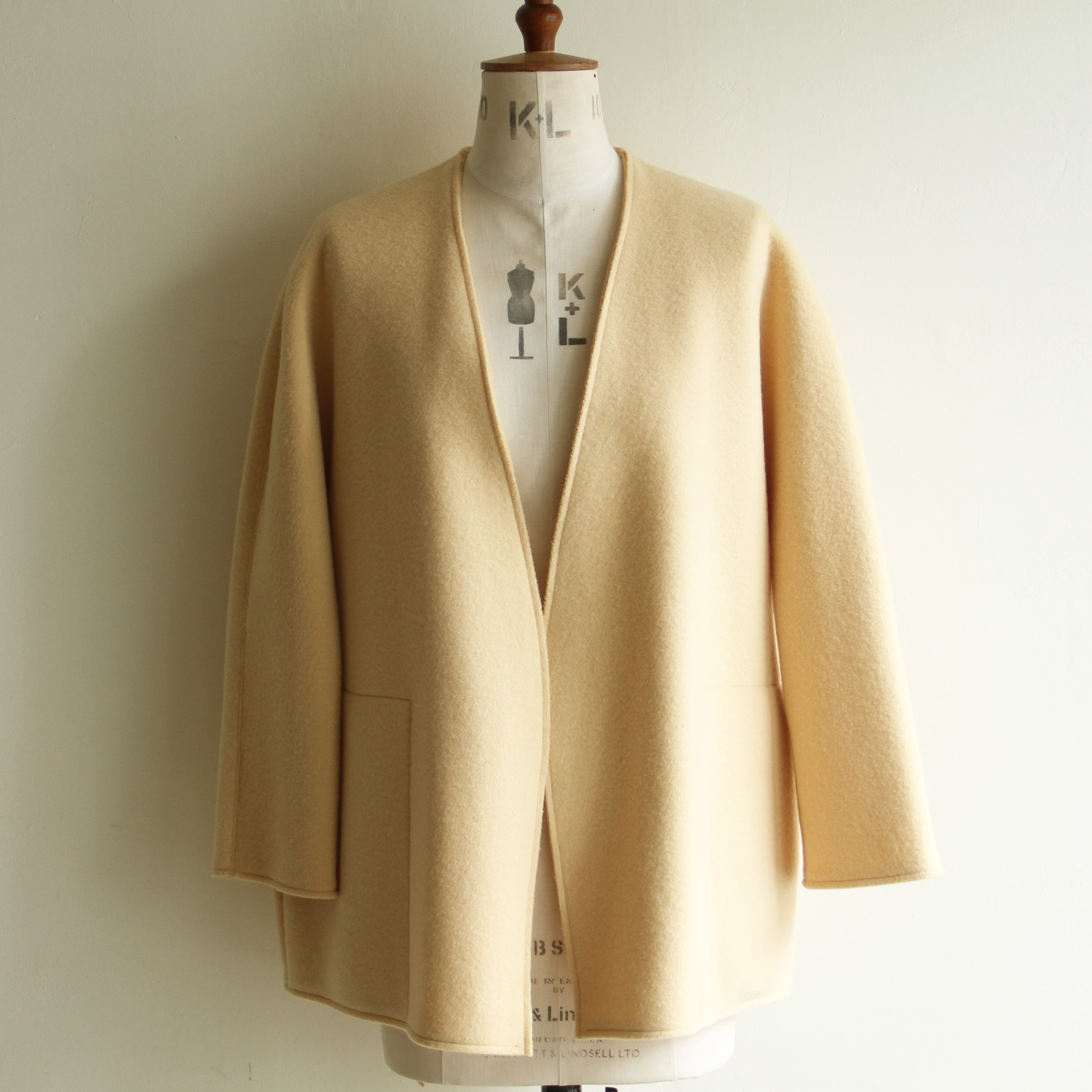 テンハンドクラフテッドモダン定番のノーカラージャケット。