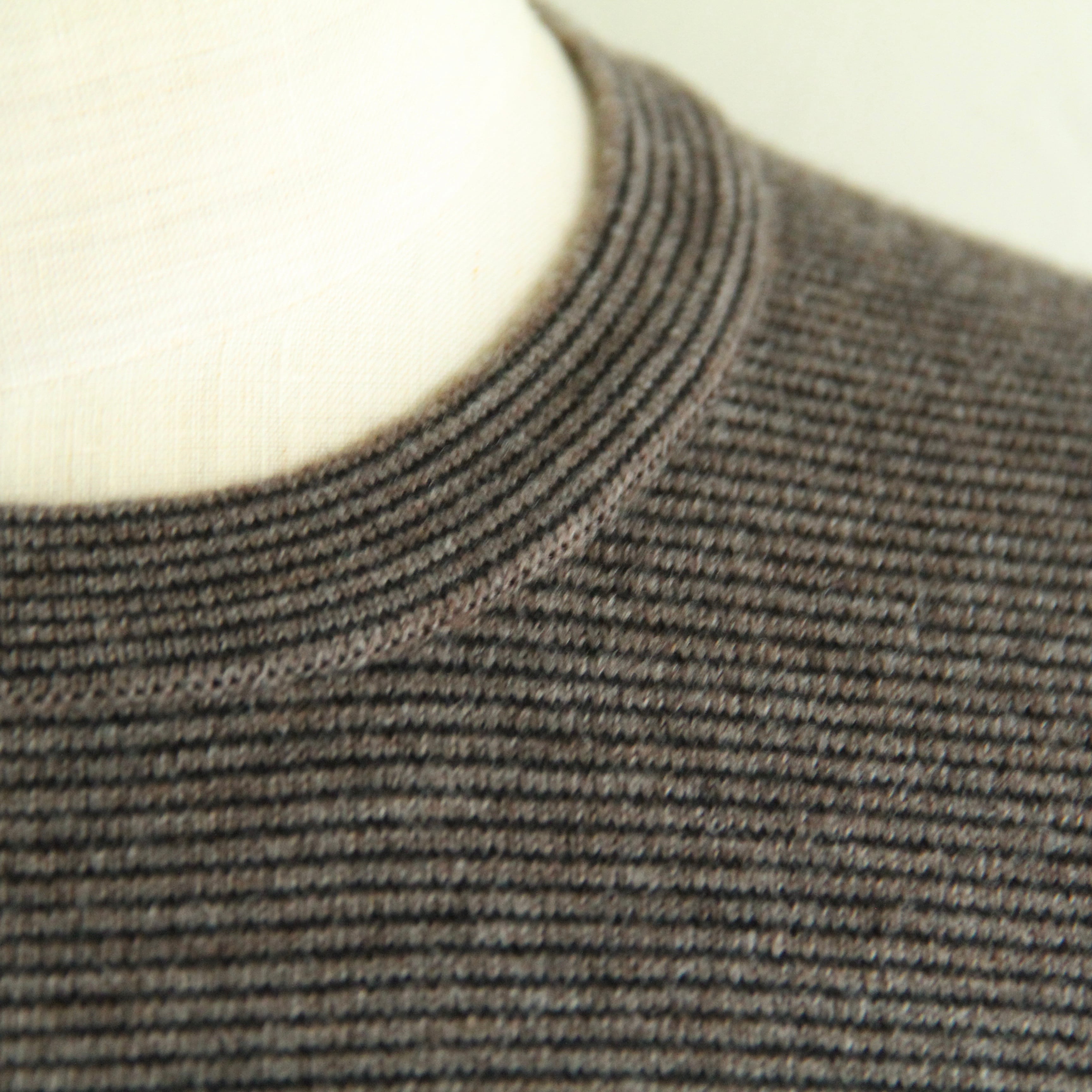無地感覚で使えるピッチの細かいボーダーのニットを14ゲージのファインゲージで作成。