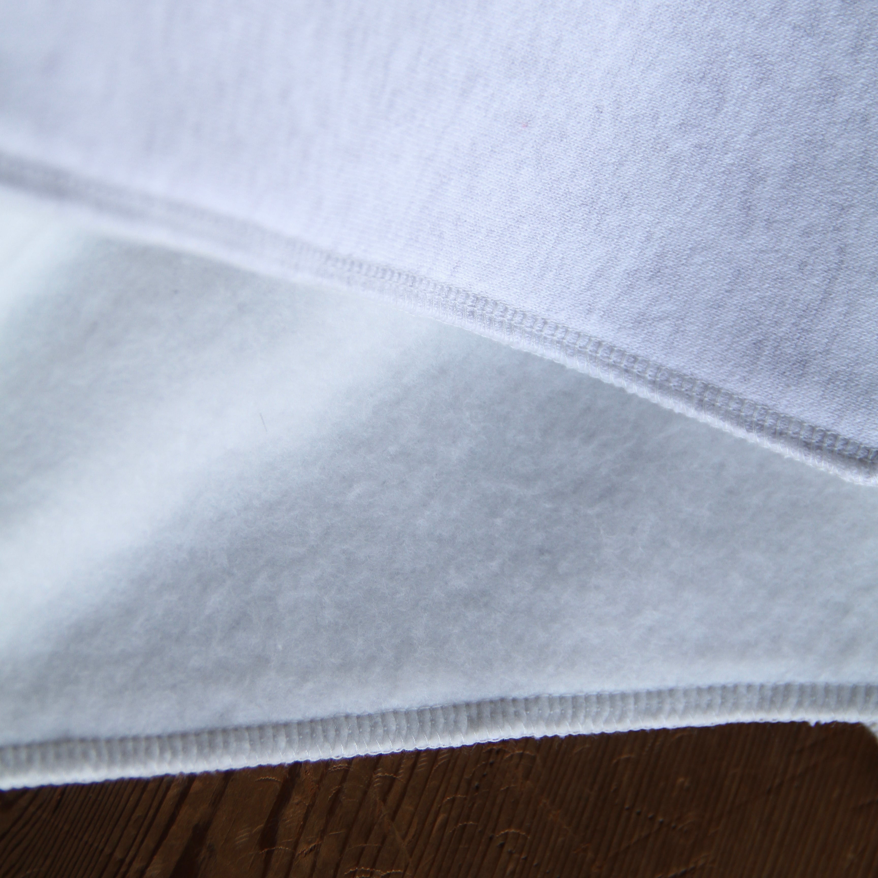 表面にコットン、中糸と裏糸にピリングになりづらいポリエステル糸を使用した裏毛を使用。