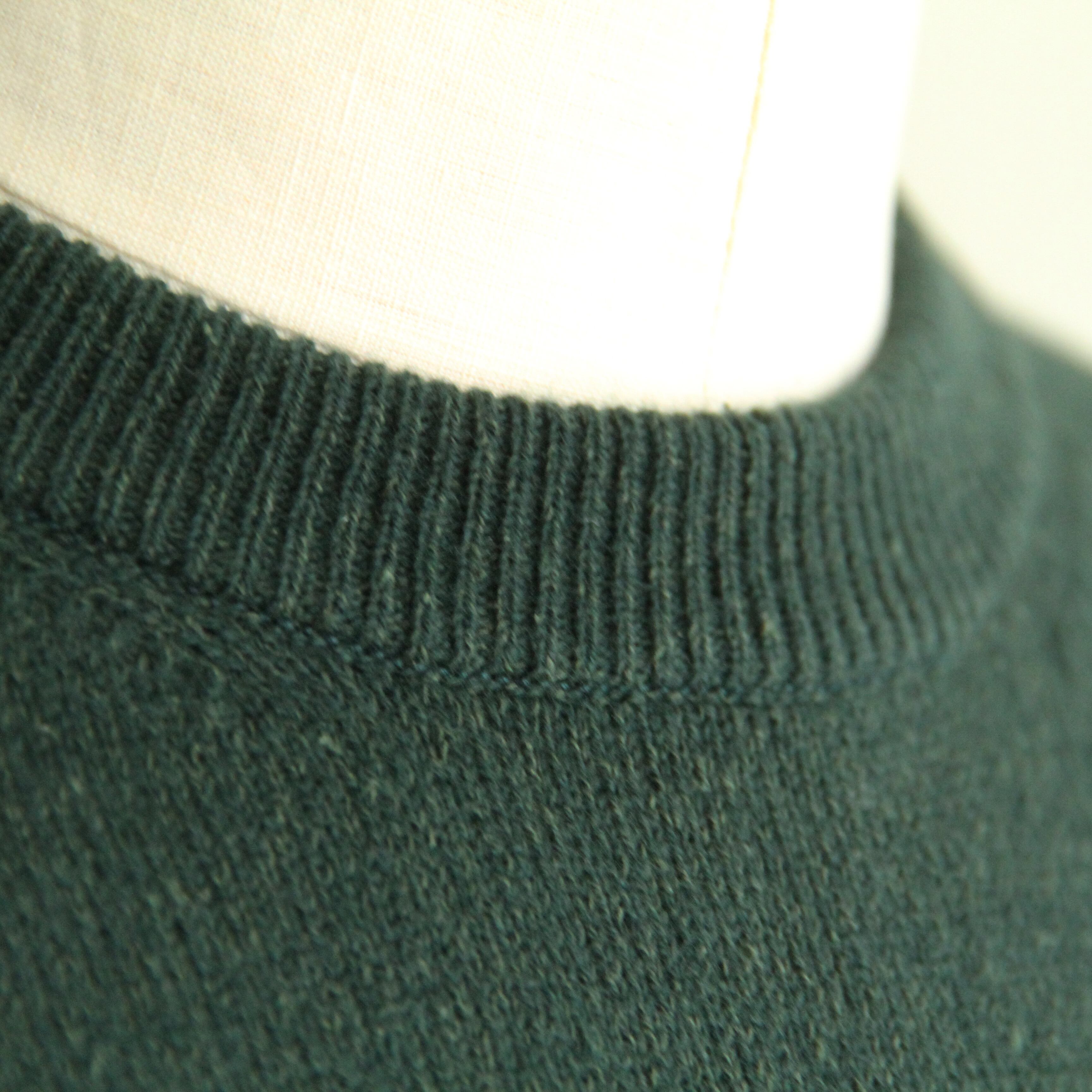 シルクのネップ糸に柔らかさと軽さに特徴があるウール糸を撚糸したオリジナル素材のプルオーバー。